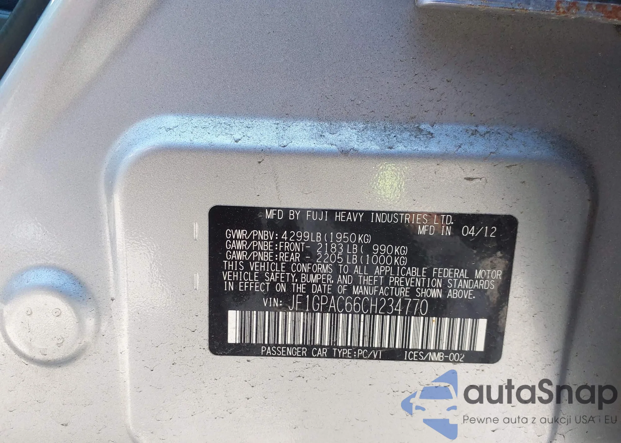 LOT: 42783006 VIN: 5XYKT4A20CG241434