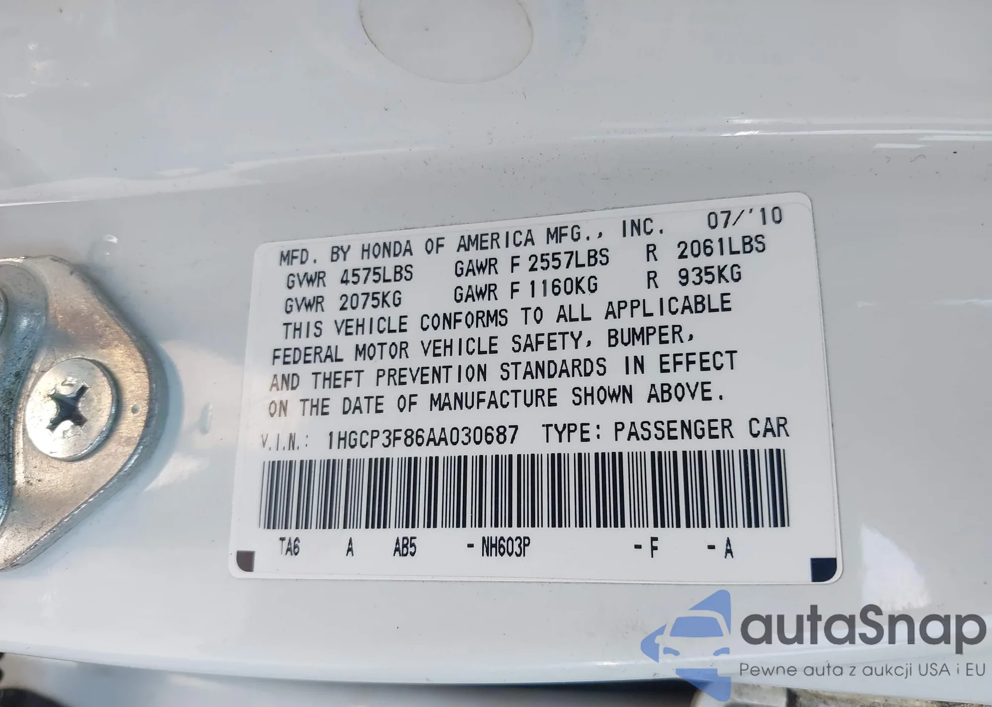 • VIN 2HKRW1H53KH502387