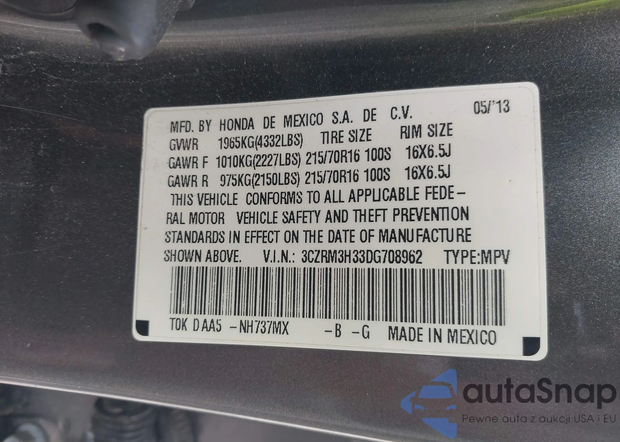 • VIN 3CZRM3H33DG708962