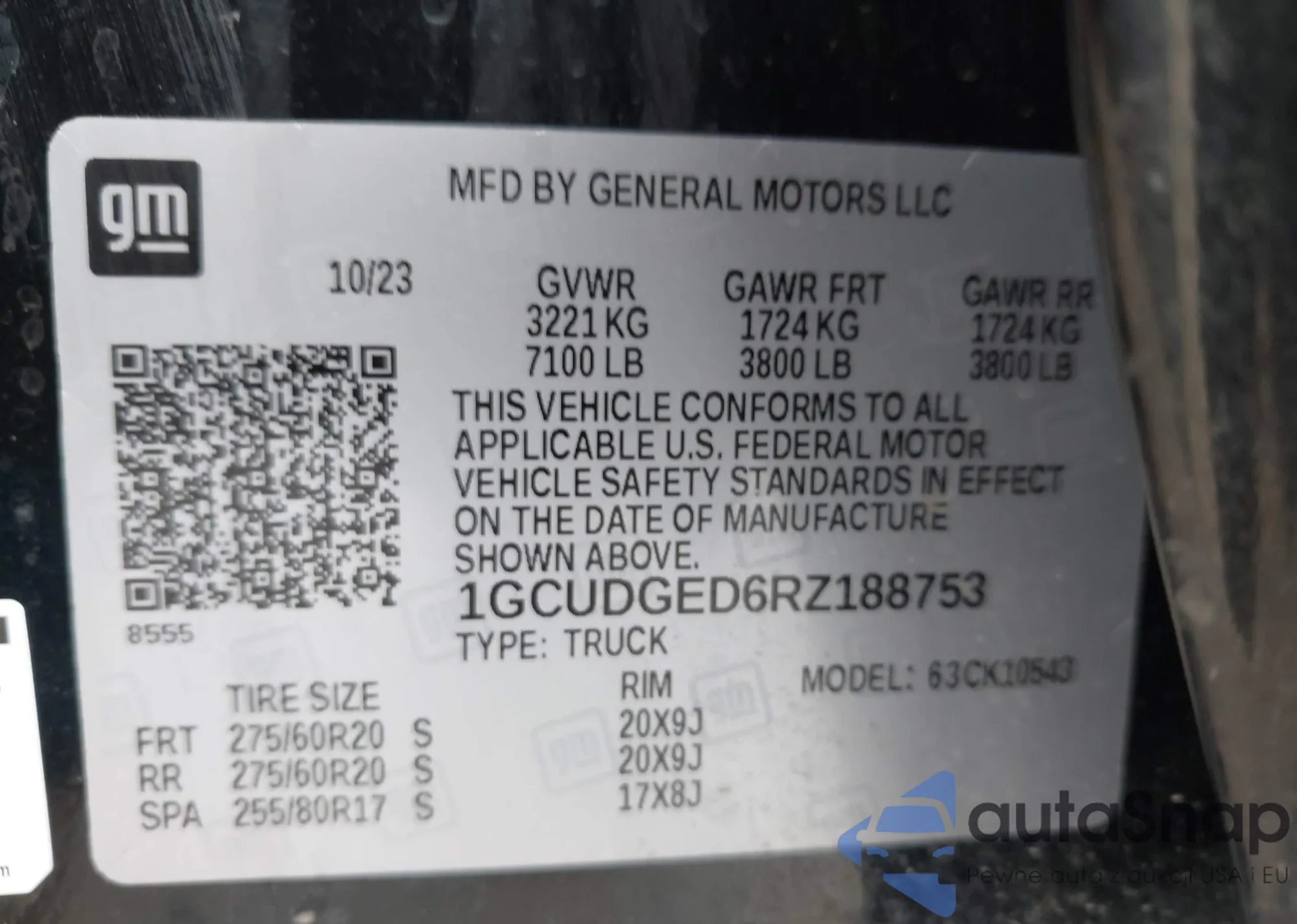 • VIN 4T3T6RFV9SU181469