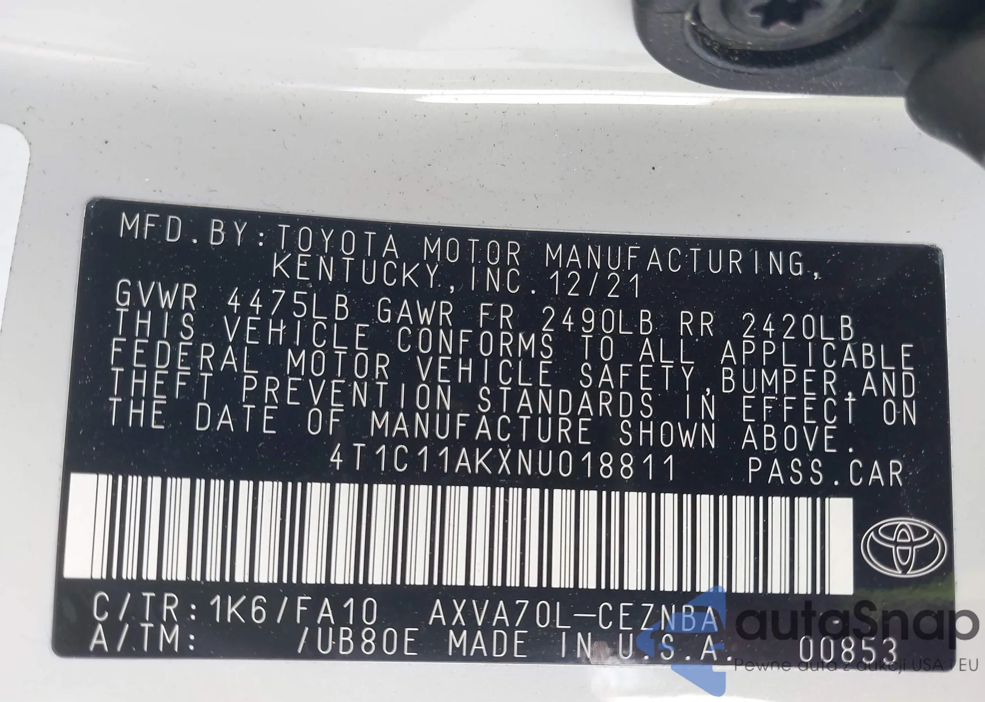 • VIN 4T1C11AKXNU018811