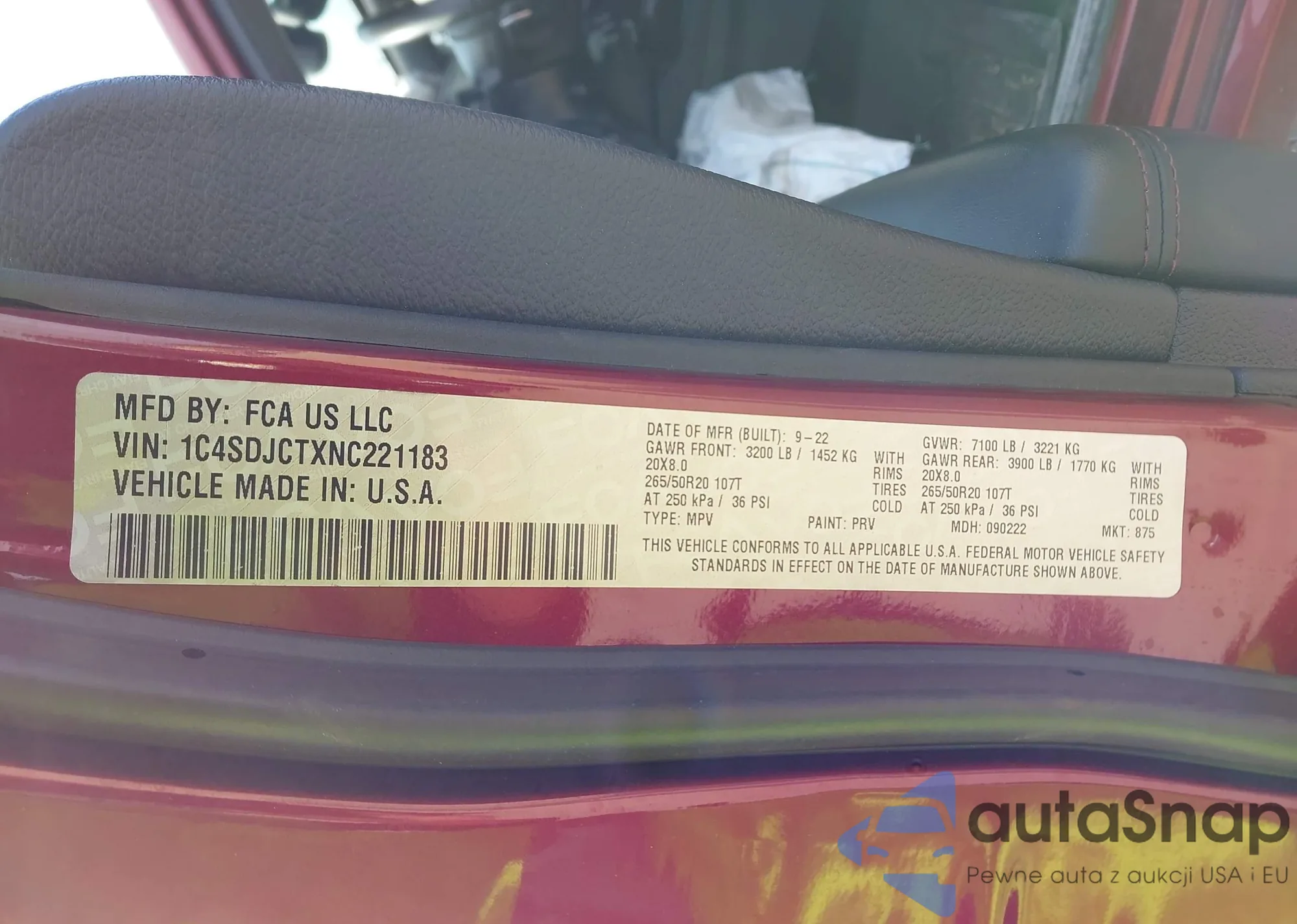LOT: 42724618 VIN: 1C4SDJCTXNC221183