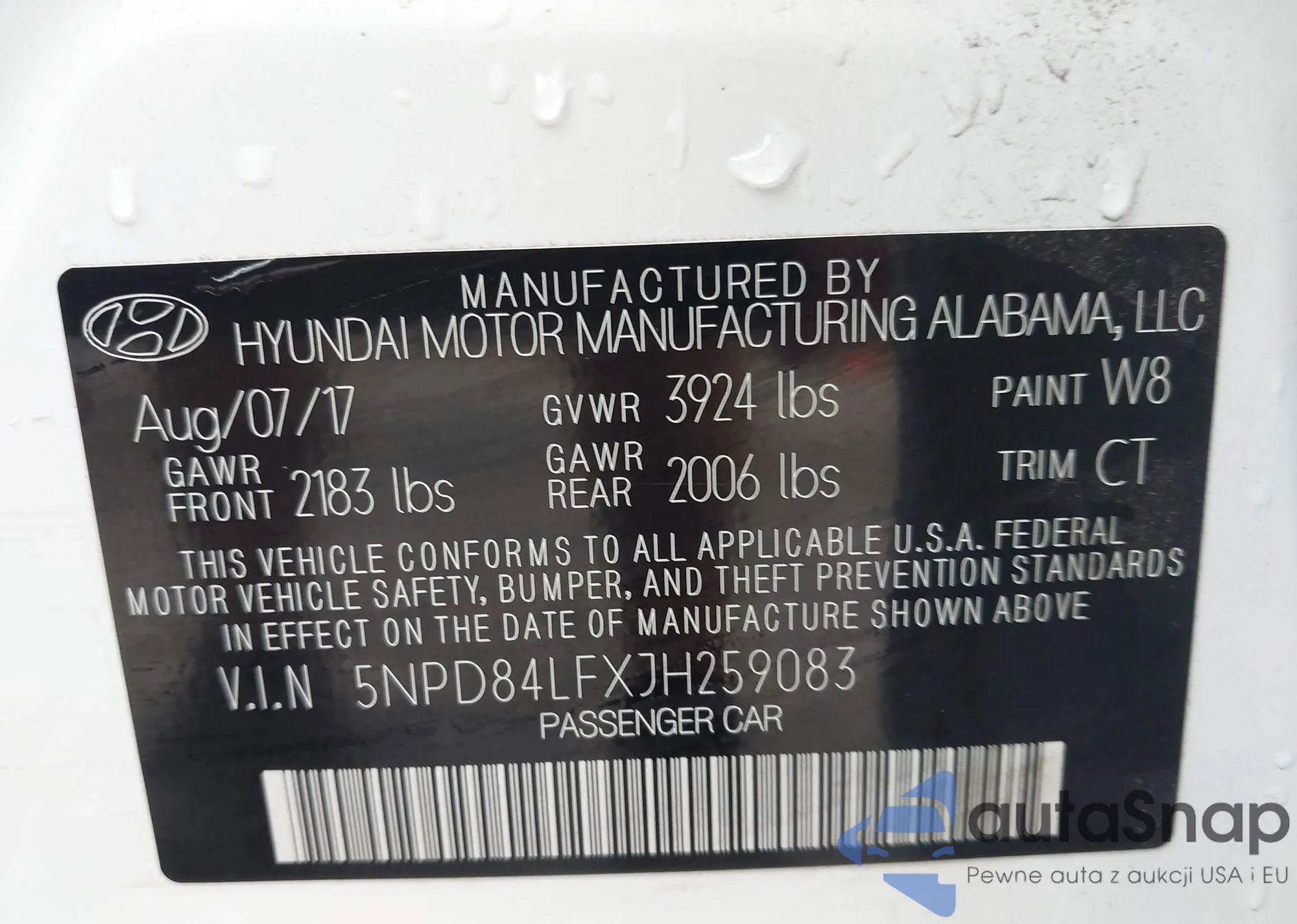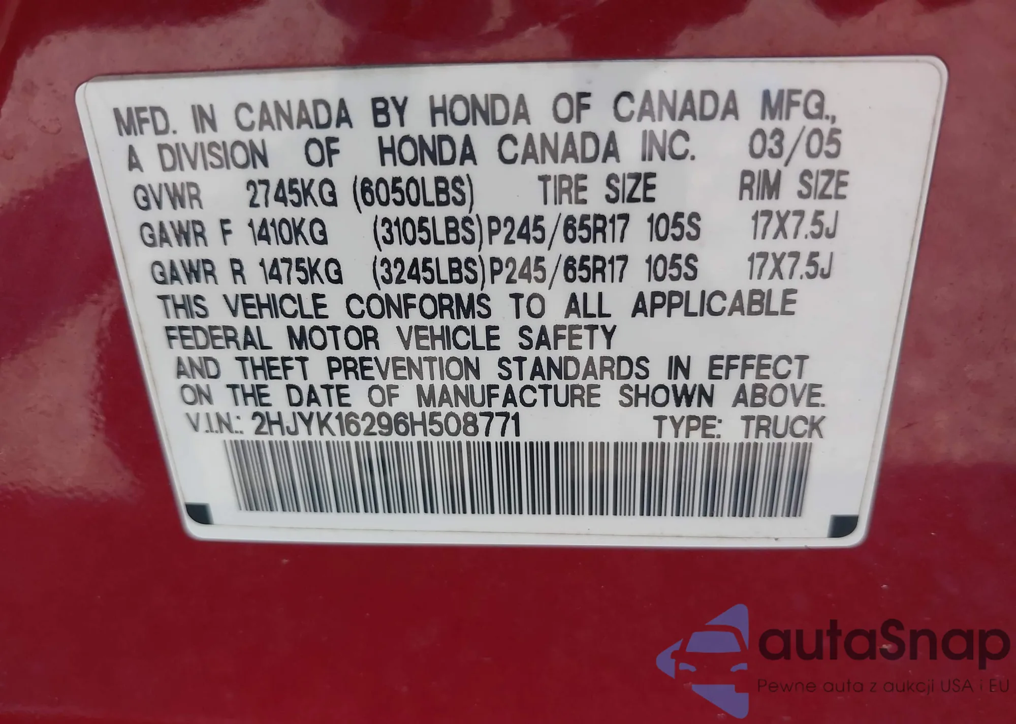 LOT: 42783123 VIN: 1HGCP2F86AA093203