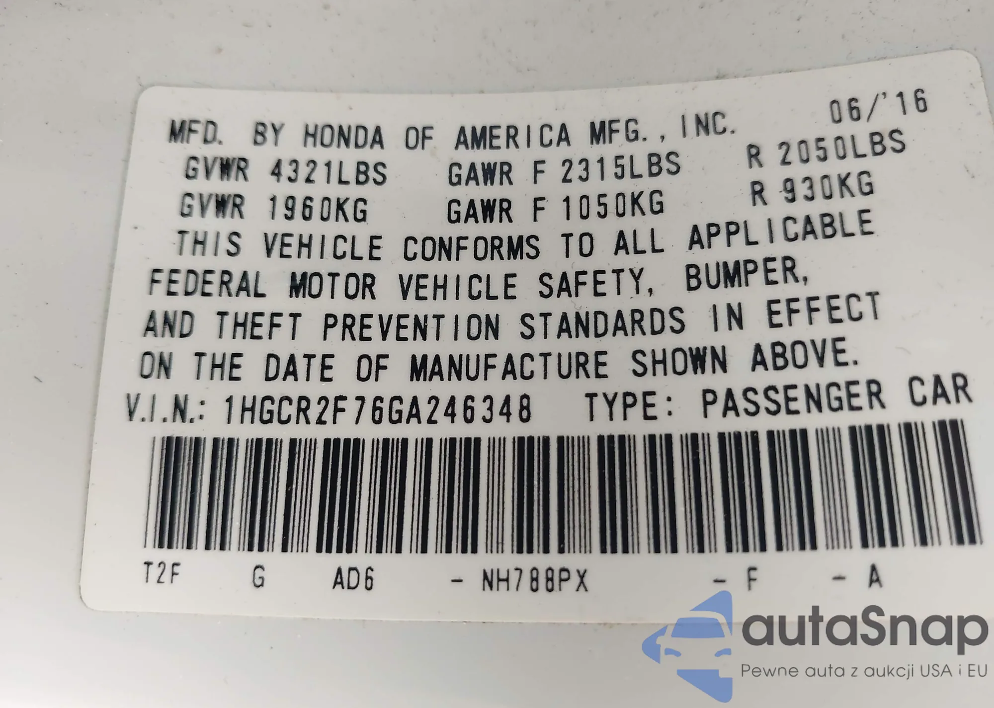LOT: 42921205 VIN: 1N4AA6APXGC395108