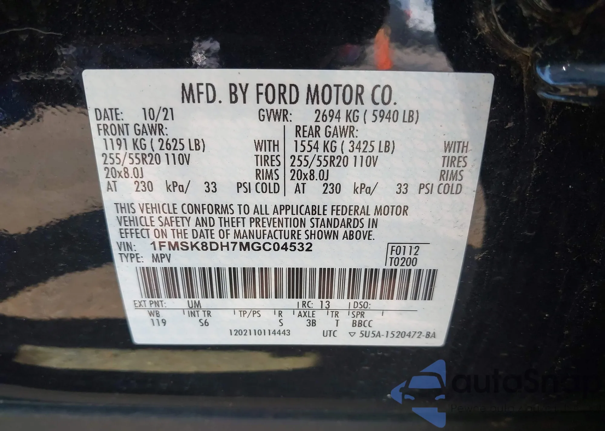 • VIN 1FMSK8DH7MGC04532