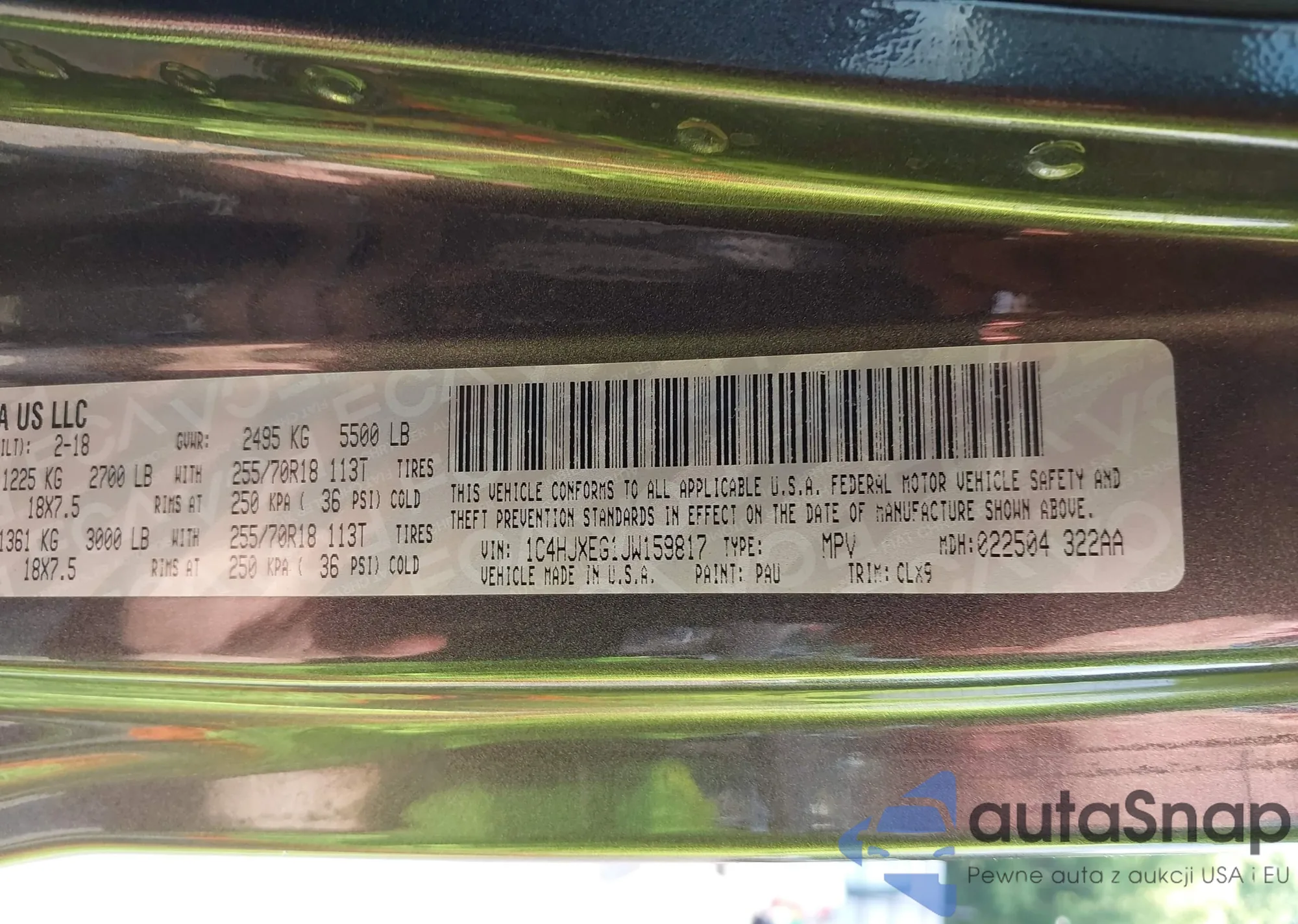 • VIN 1C4RJFAG0DC609726