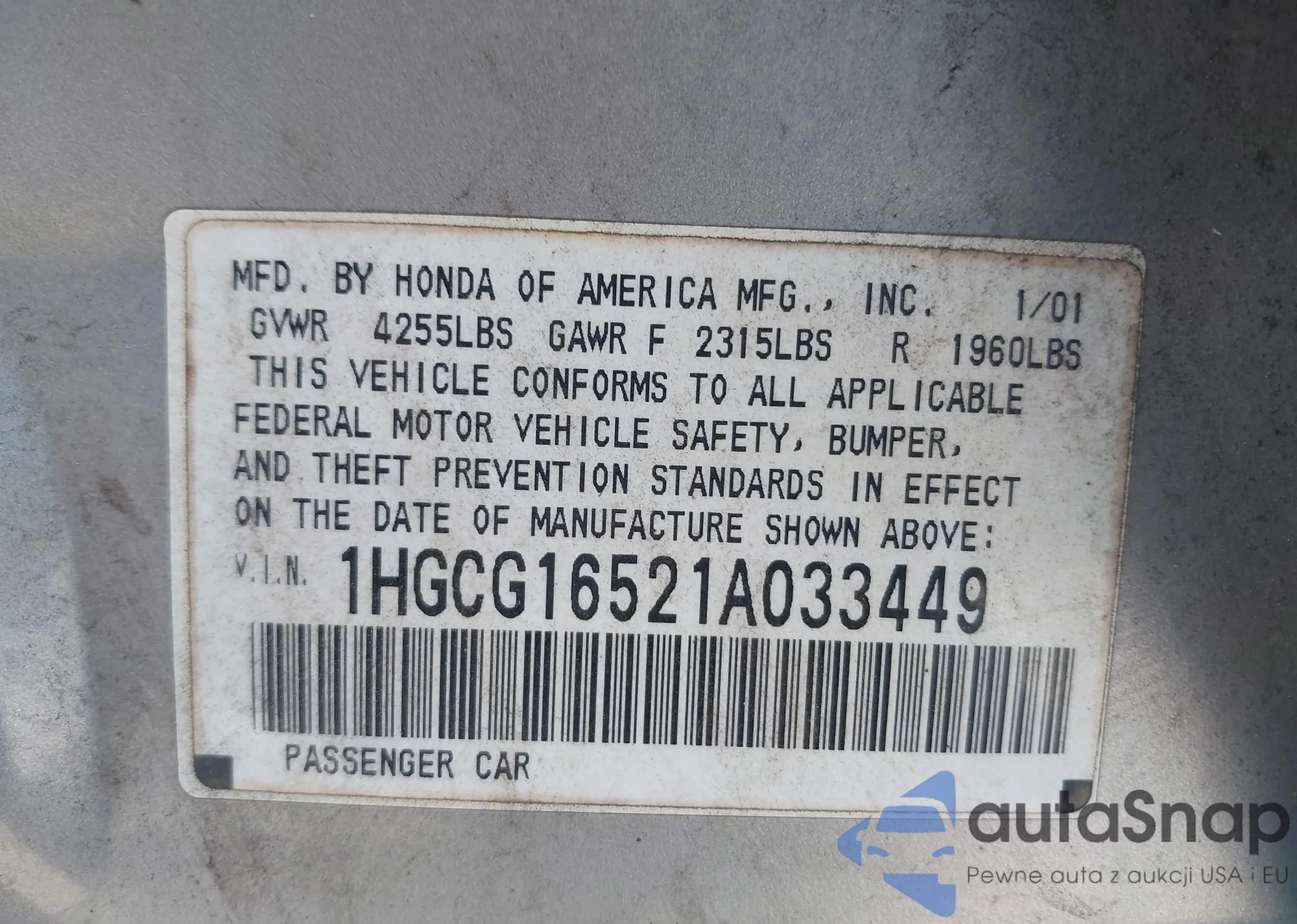 LOT: 42705128 VIN: 19XFC2F71JE043918