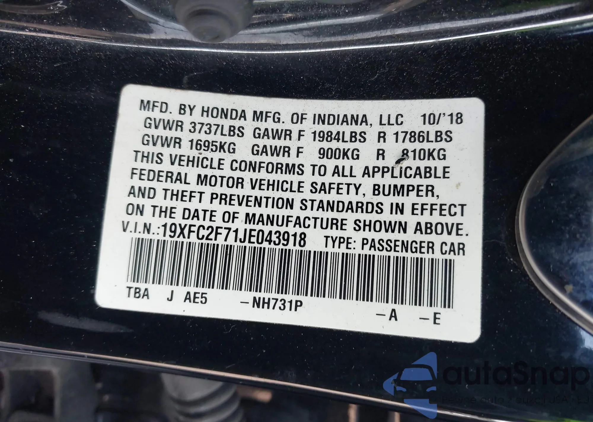 • VIN 19XFC2F71JE043918