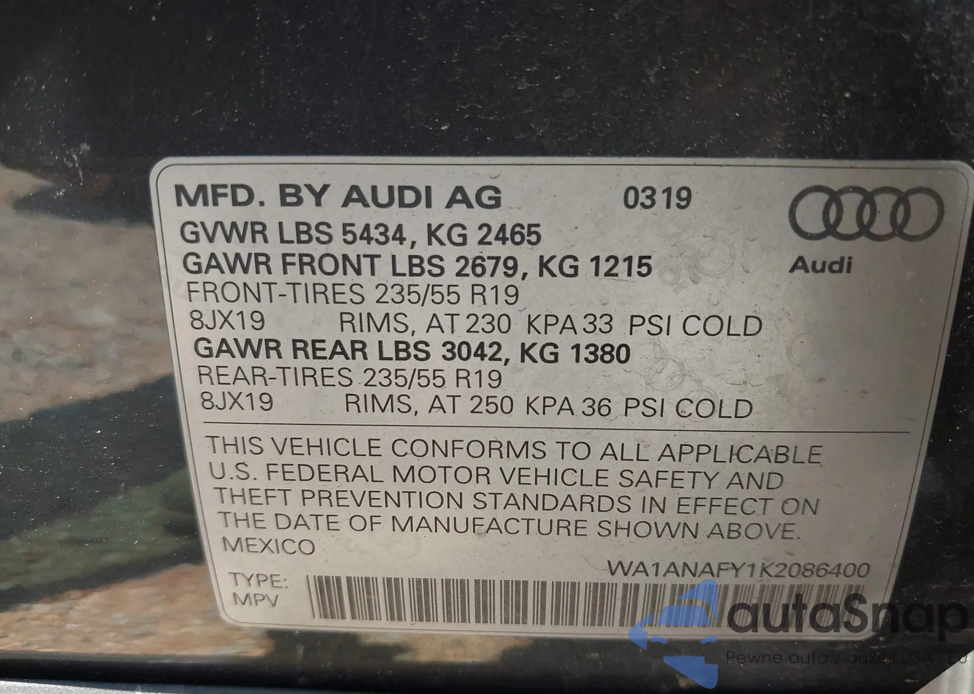 • VIN 2T3DWRFV9KW032824