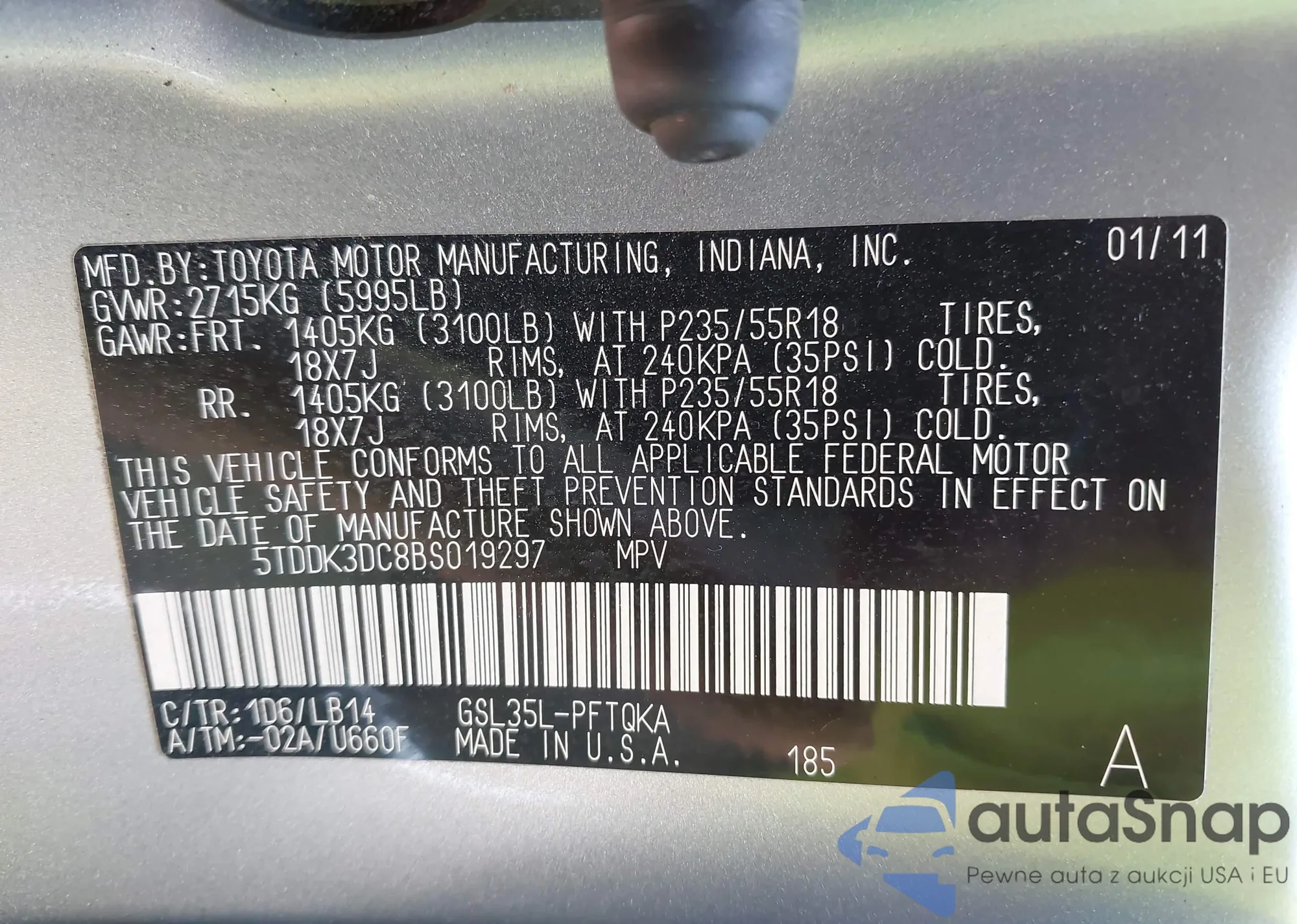LOT: 42968758 VIN: 5TDDK3DC8BS019297