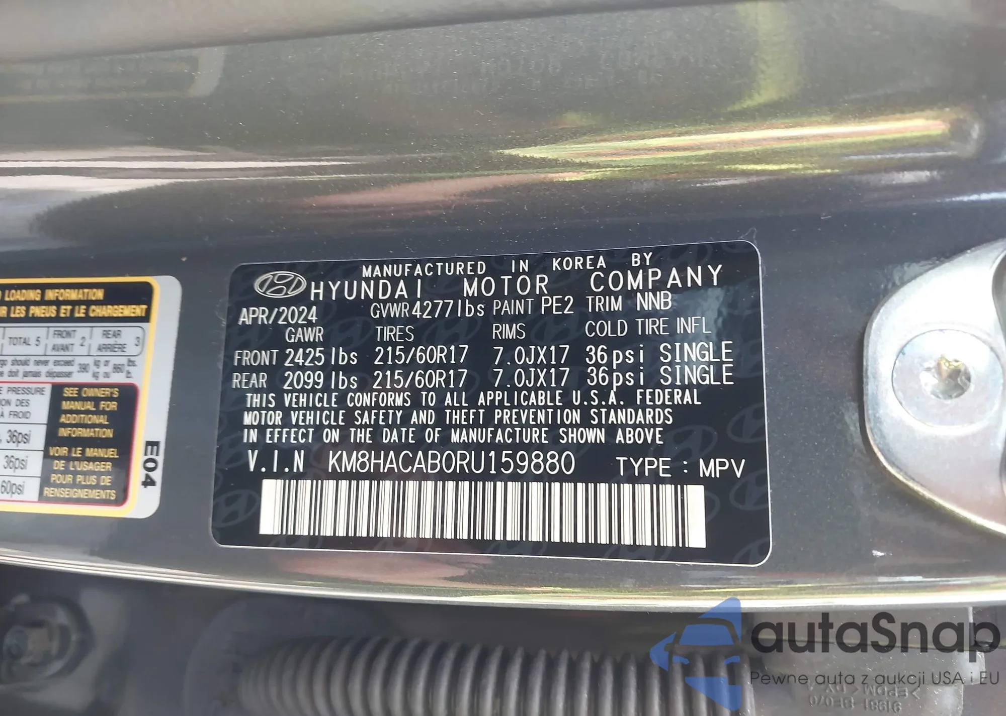 LOT: 42776020 VIN: KM8HACAB0RU159880