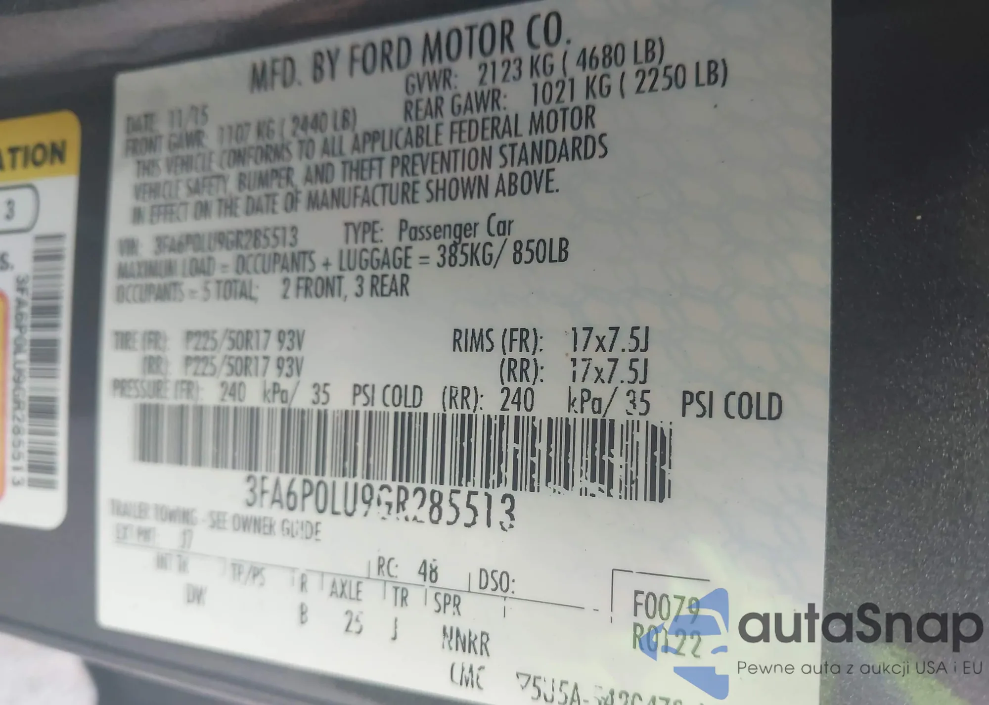 • VIN 3FA6P0LU9GR285513