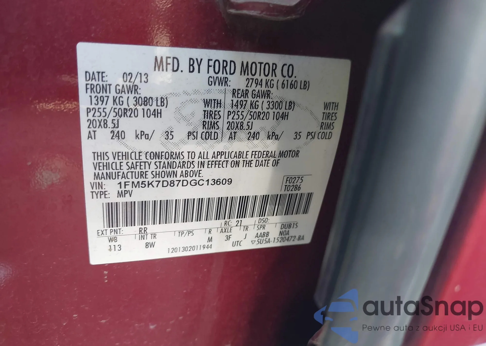 LOT: 42845694 VIN: 1FM5K7D87DGC13609