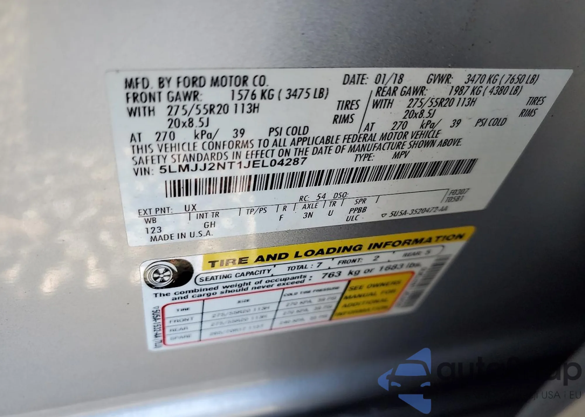 • VIN 5LMJJ2NT1JEL04287