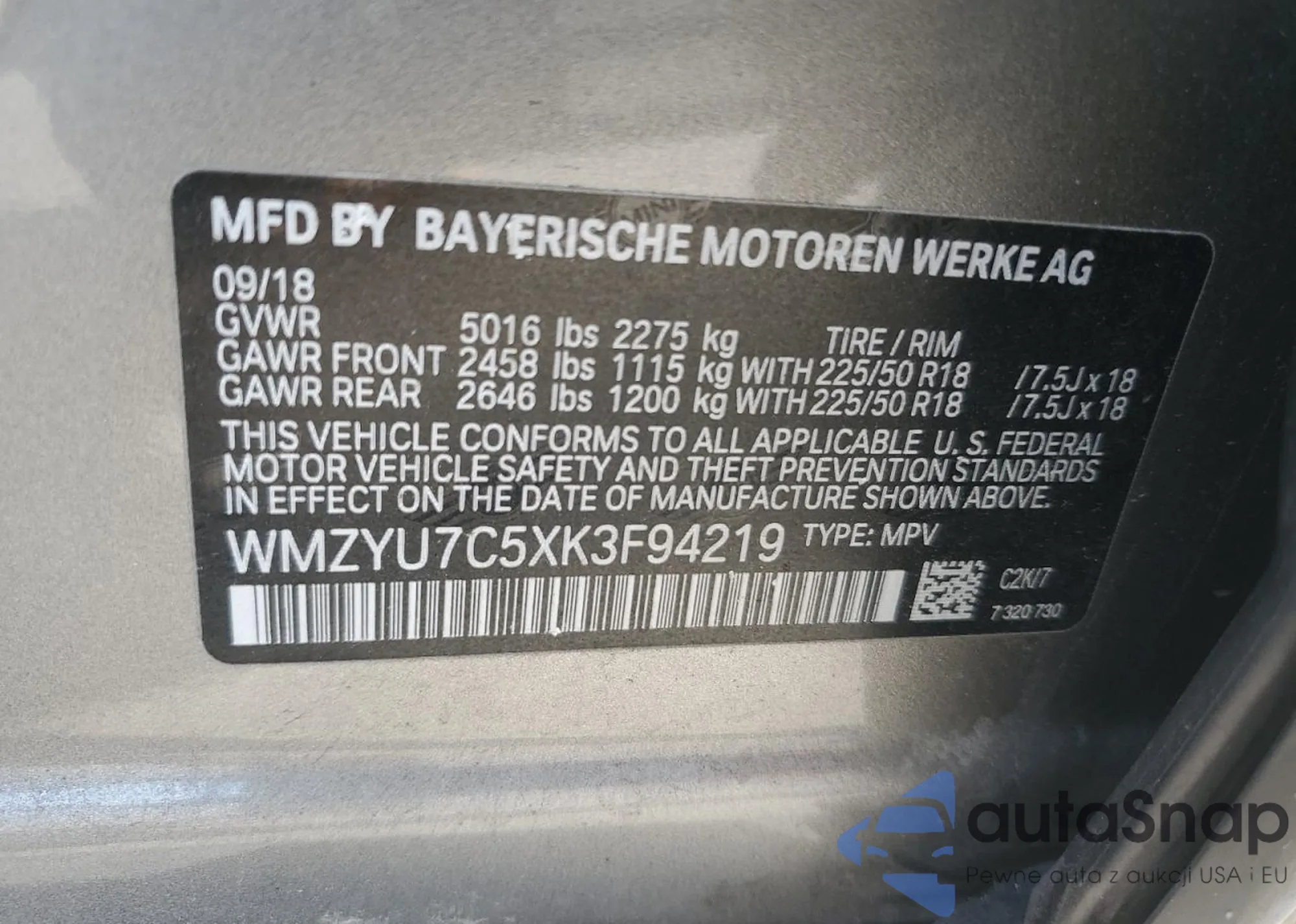 • VIN WMZYU7C5XK3F94219