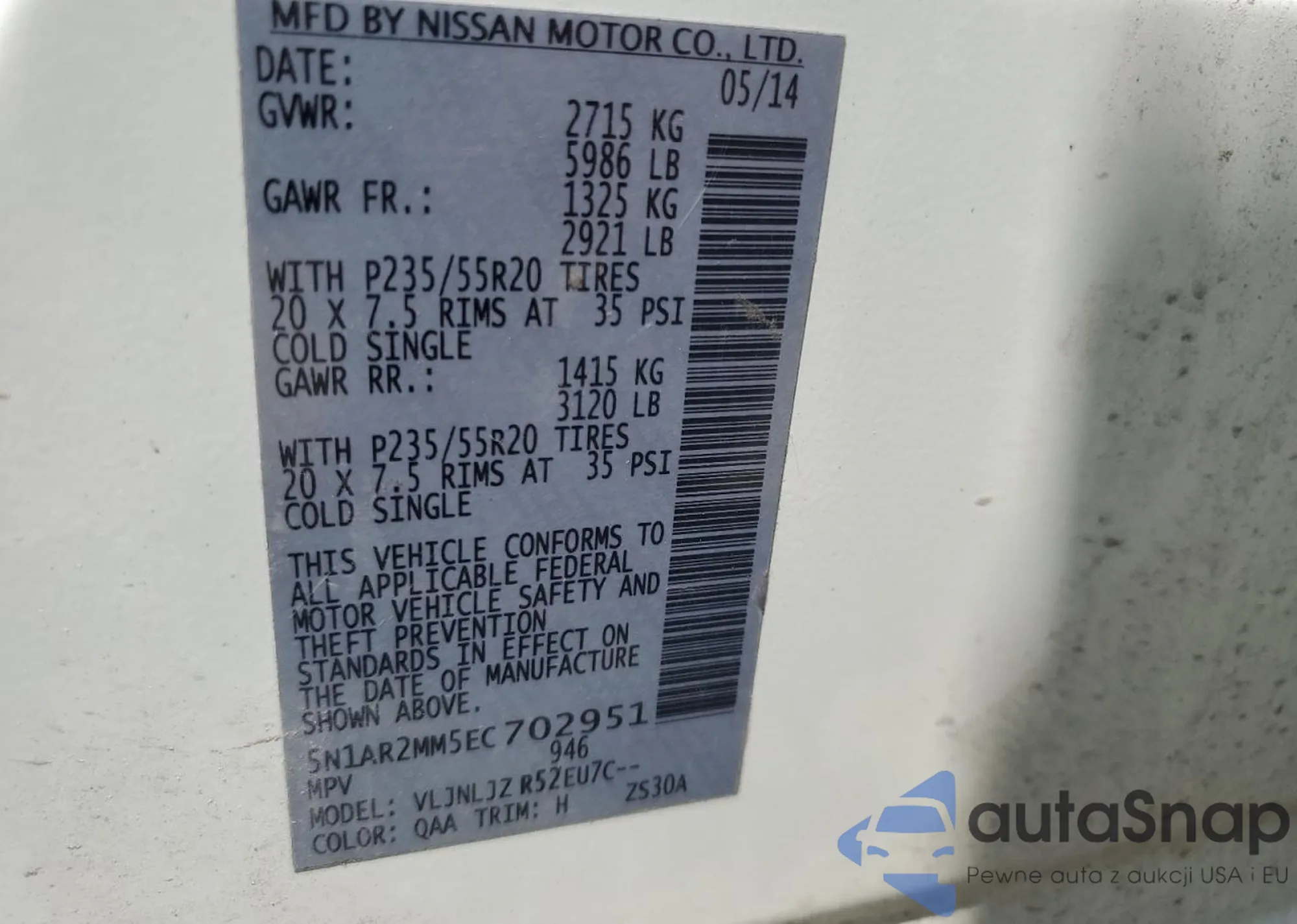 2014 Toyota Prius V из США, поврежденный, VIN JTDZN3EU4E3331871