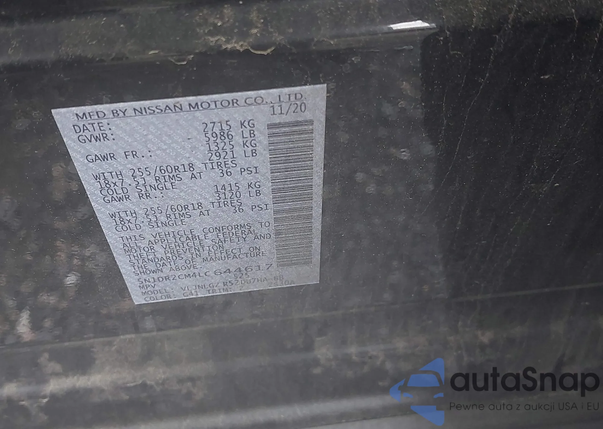 • VIN JN8AZ1MU1CW117346