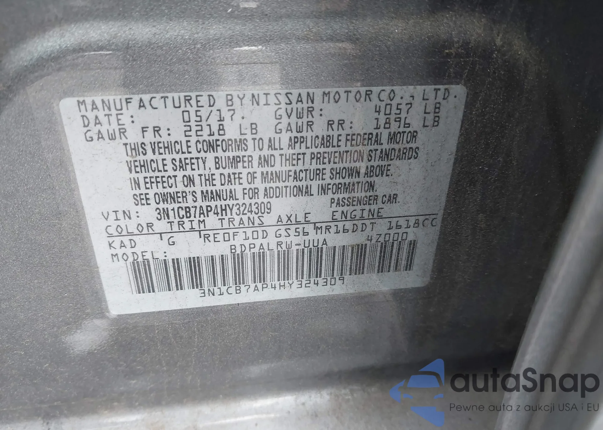 • VIN 3N1CB7AP4HY324309