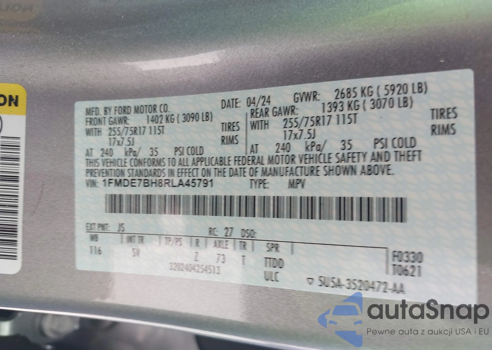 • VIN 1FMDE7BH8RLA45791