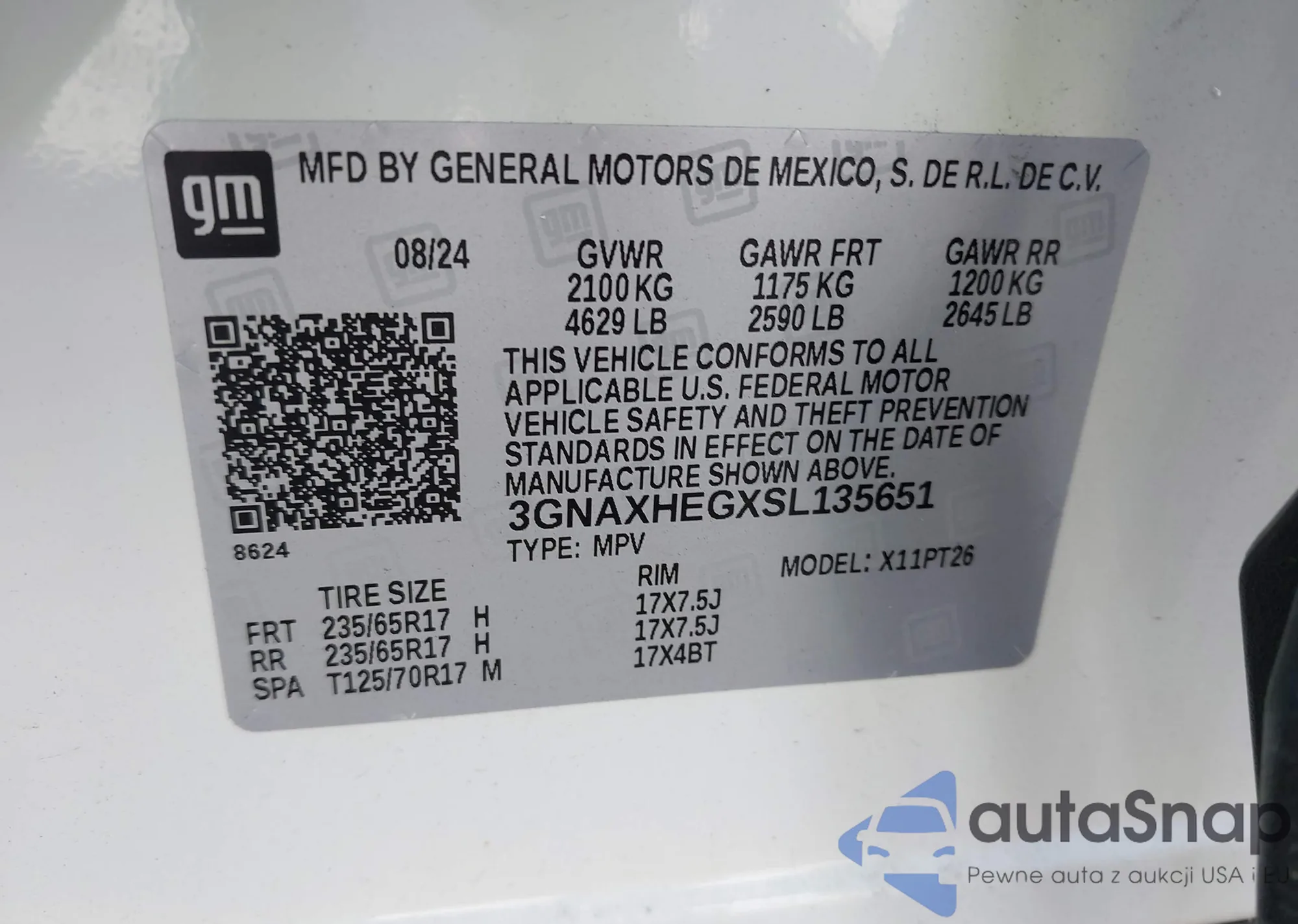 LOT: 42765359 VIN: 3GNAXHEGXSL135651