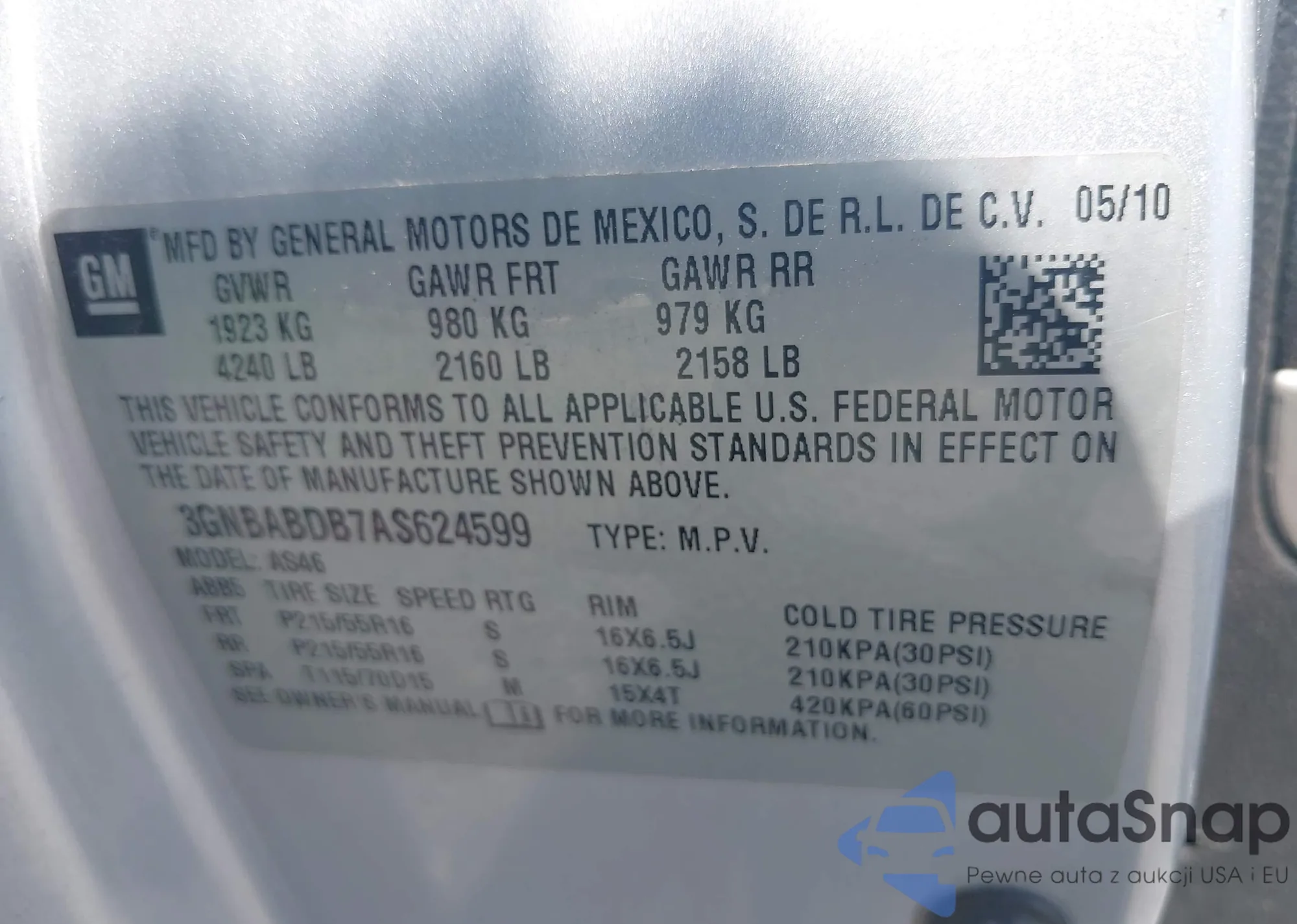 LOT: 42833920 VIN: 3GNBABDB7AS624599