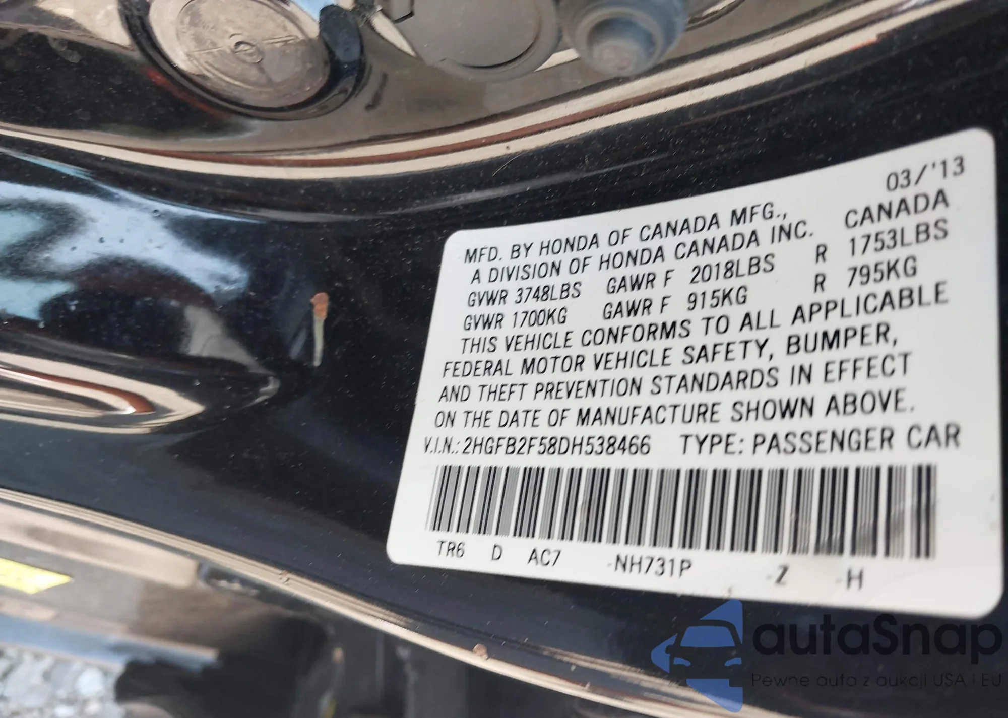 • VIN WAUFFAFL7DN005525