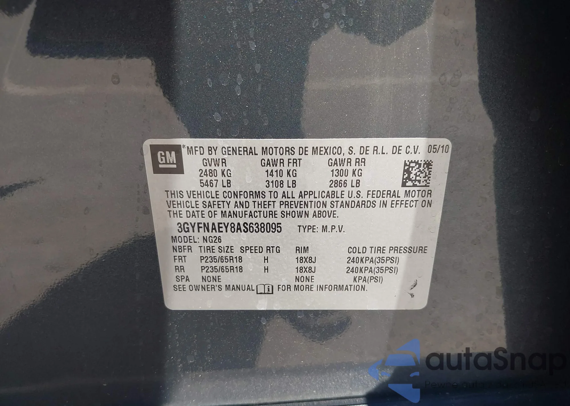 • VIN 3GYFNAEY8AS638095