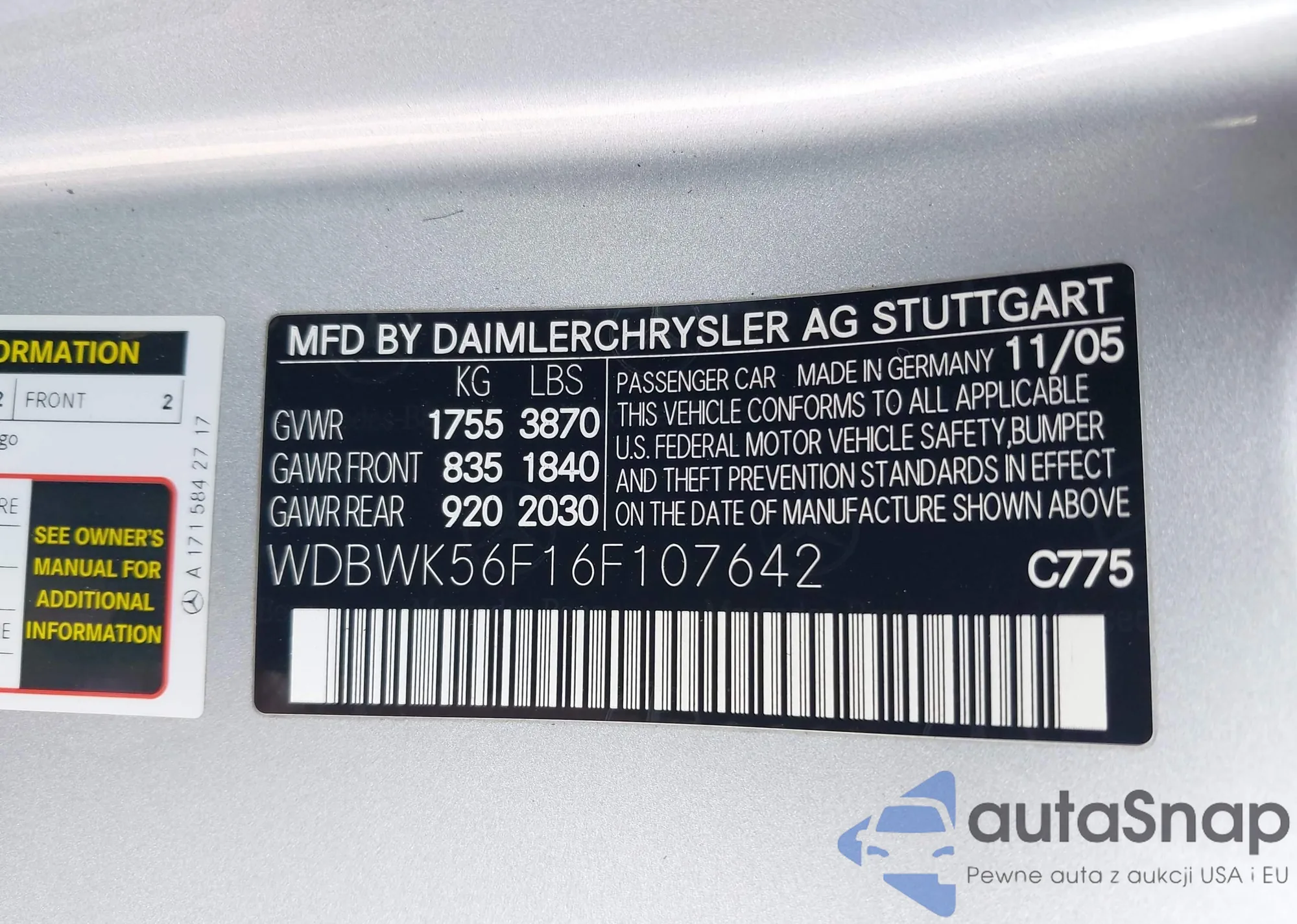 LOT: 42902709 VIN: WDBWK56F16F107642