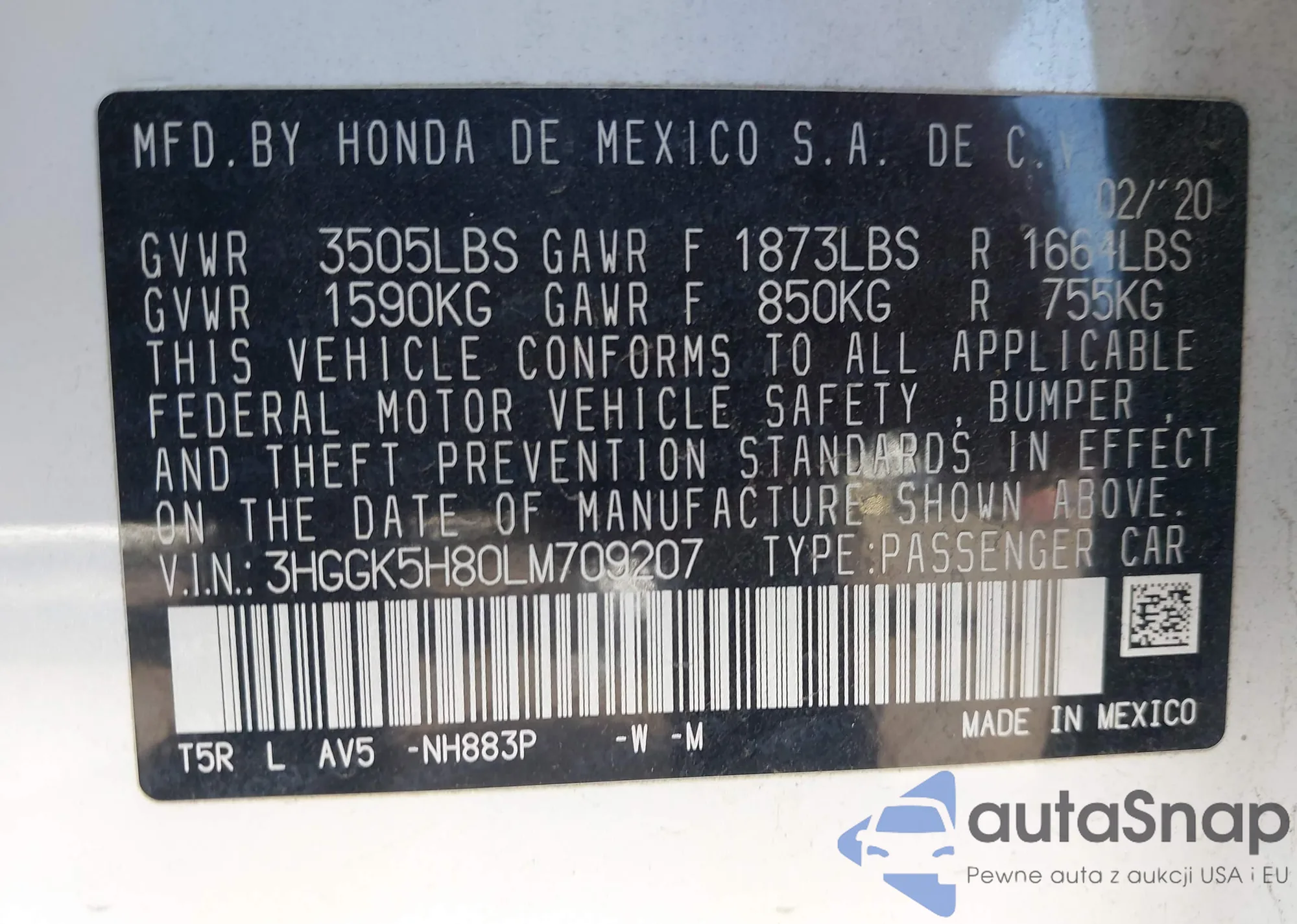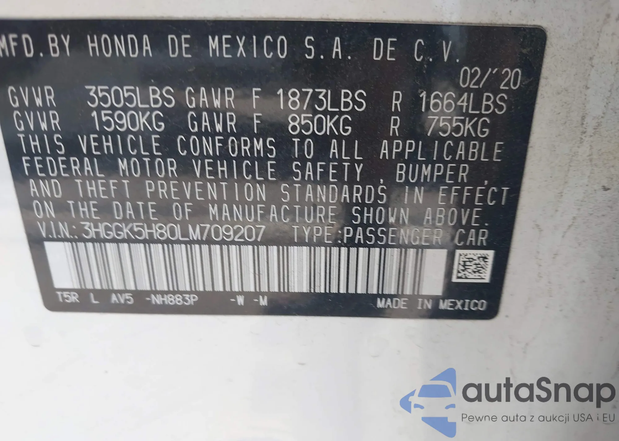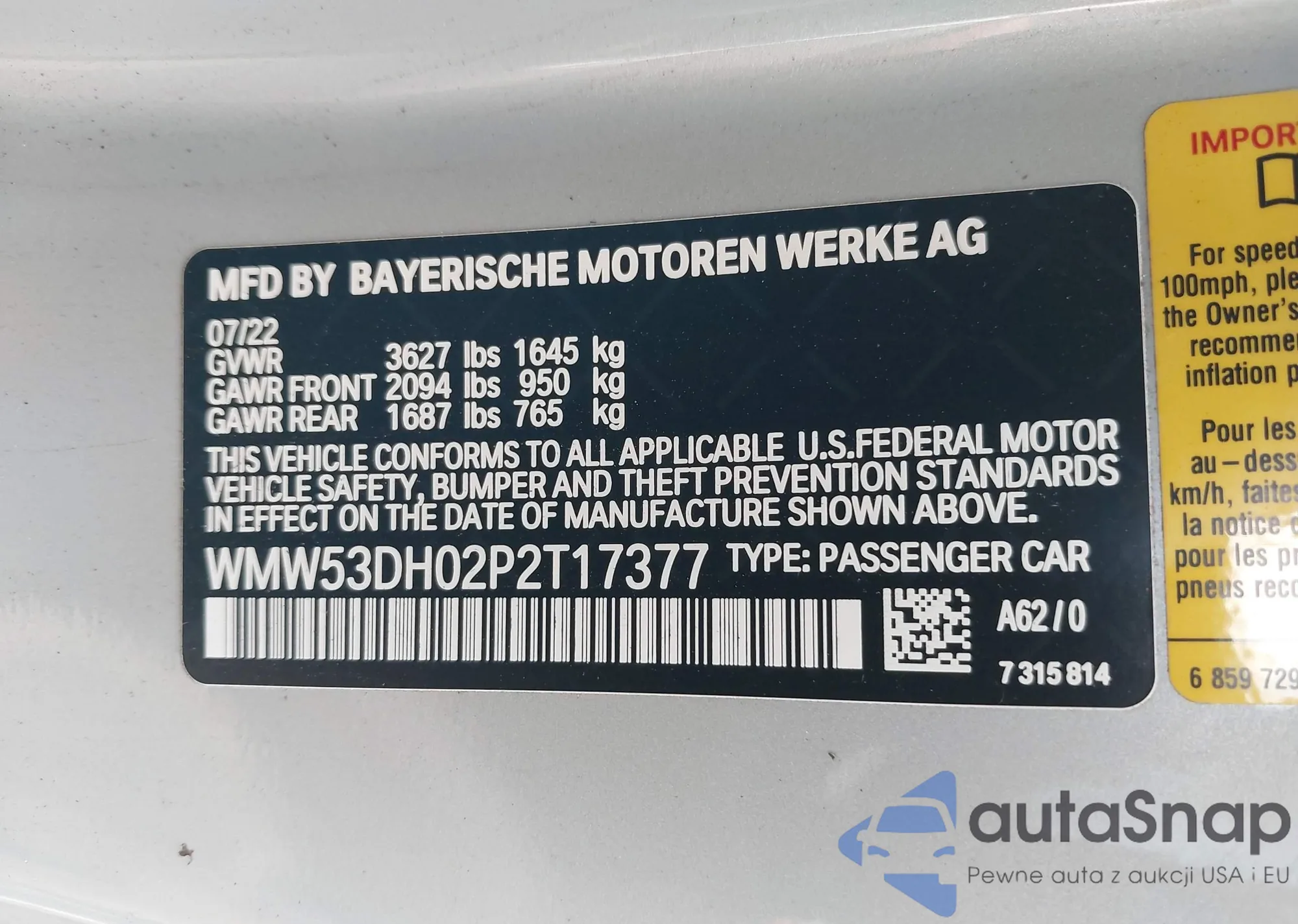 • VIN 3VW7M7BU6PM059103