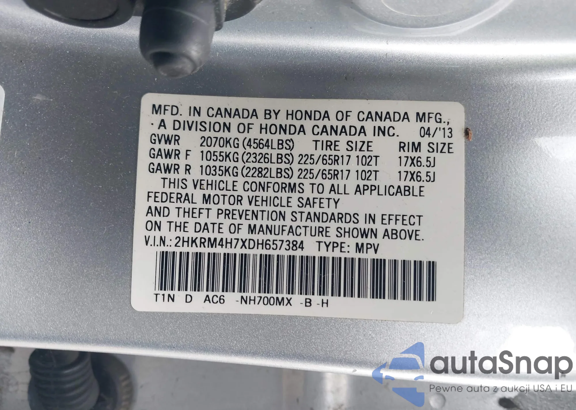 • VIN 5J6YH17675L013923