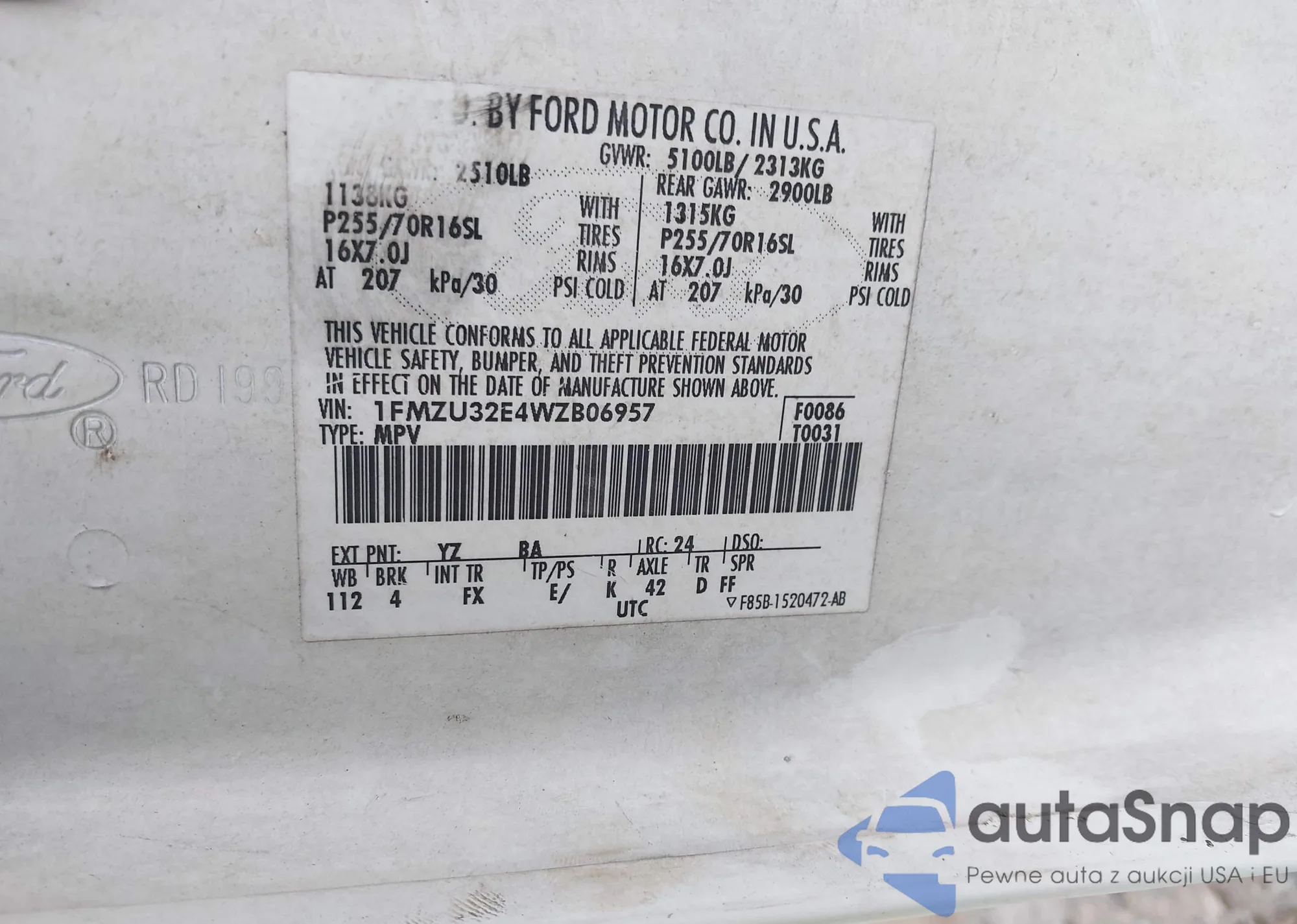 • VIN 1FMZU32E4WZB06957
