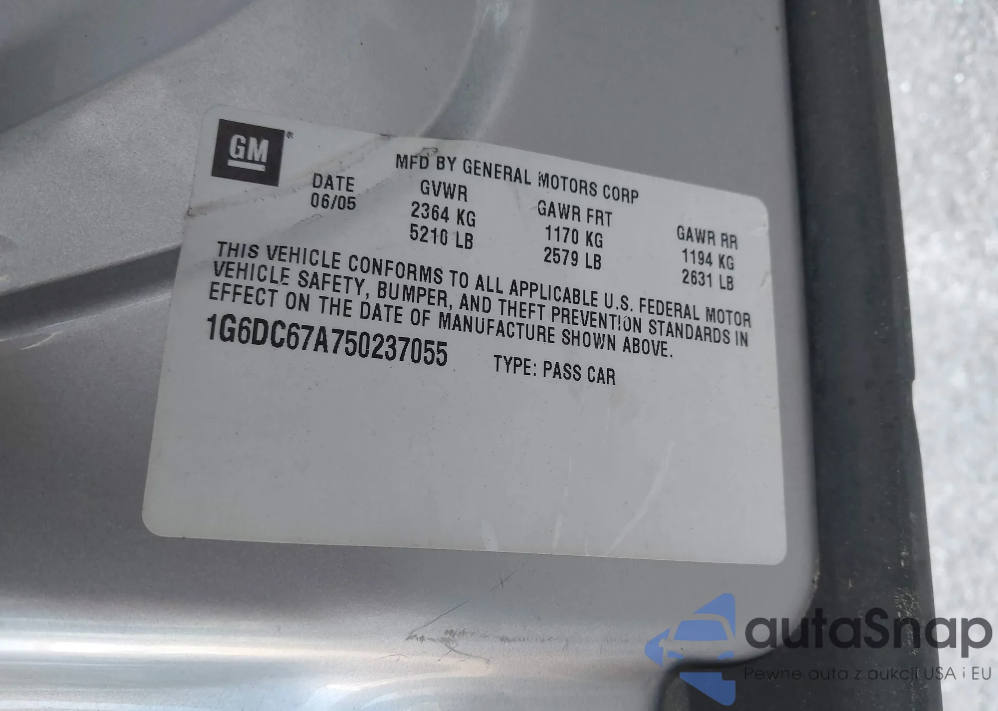 • VIN 1G6DC67A750237055