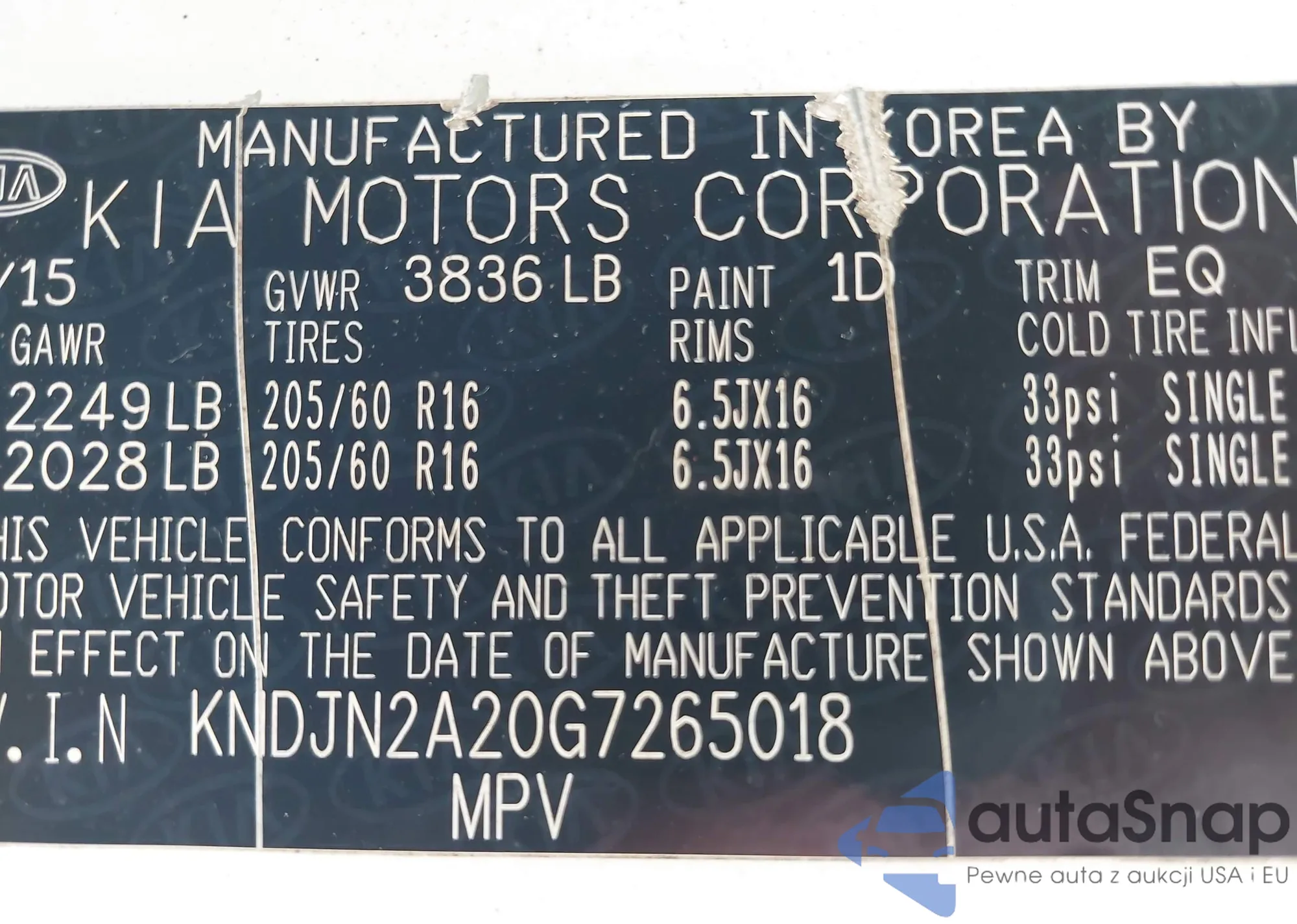 LOT: 42747739 VIN: KNAGT4L32G5117883
