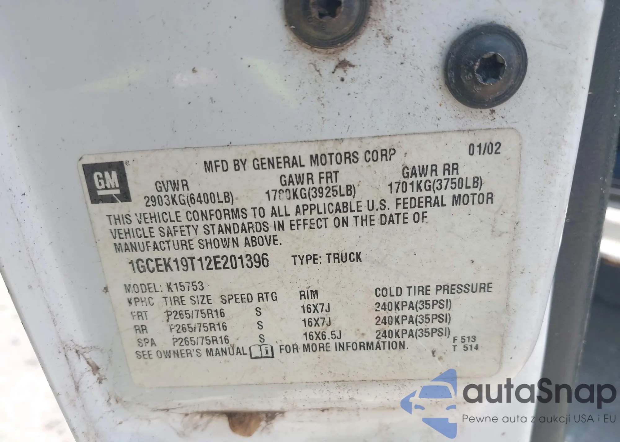 • VIN KL47LBEP9SB080214