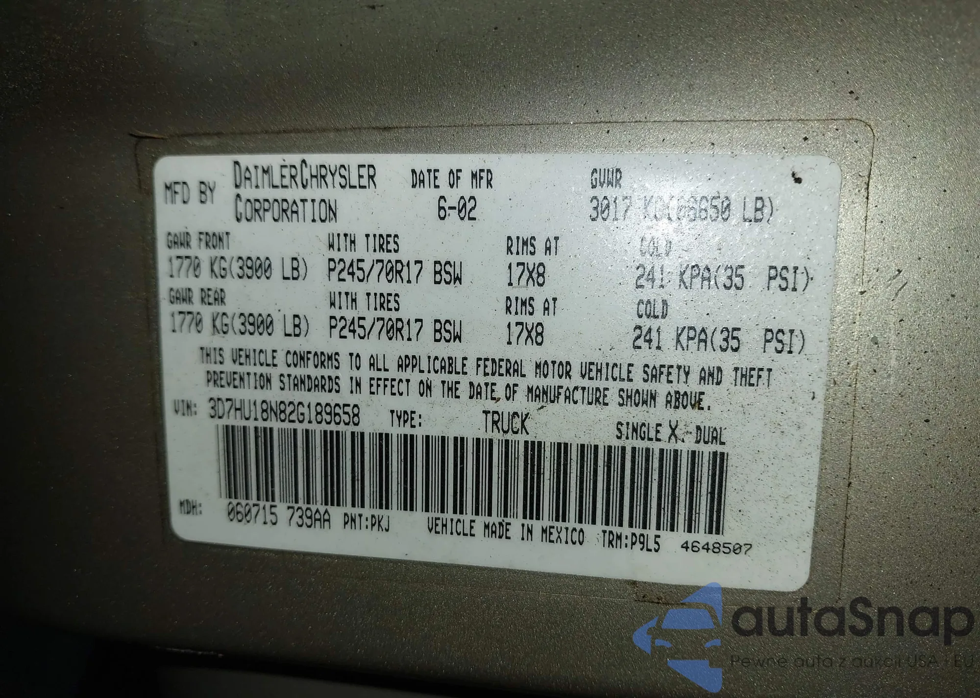 • VIN 1GCEK19JX7Z629269