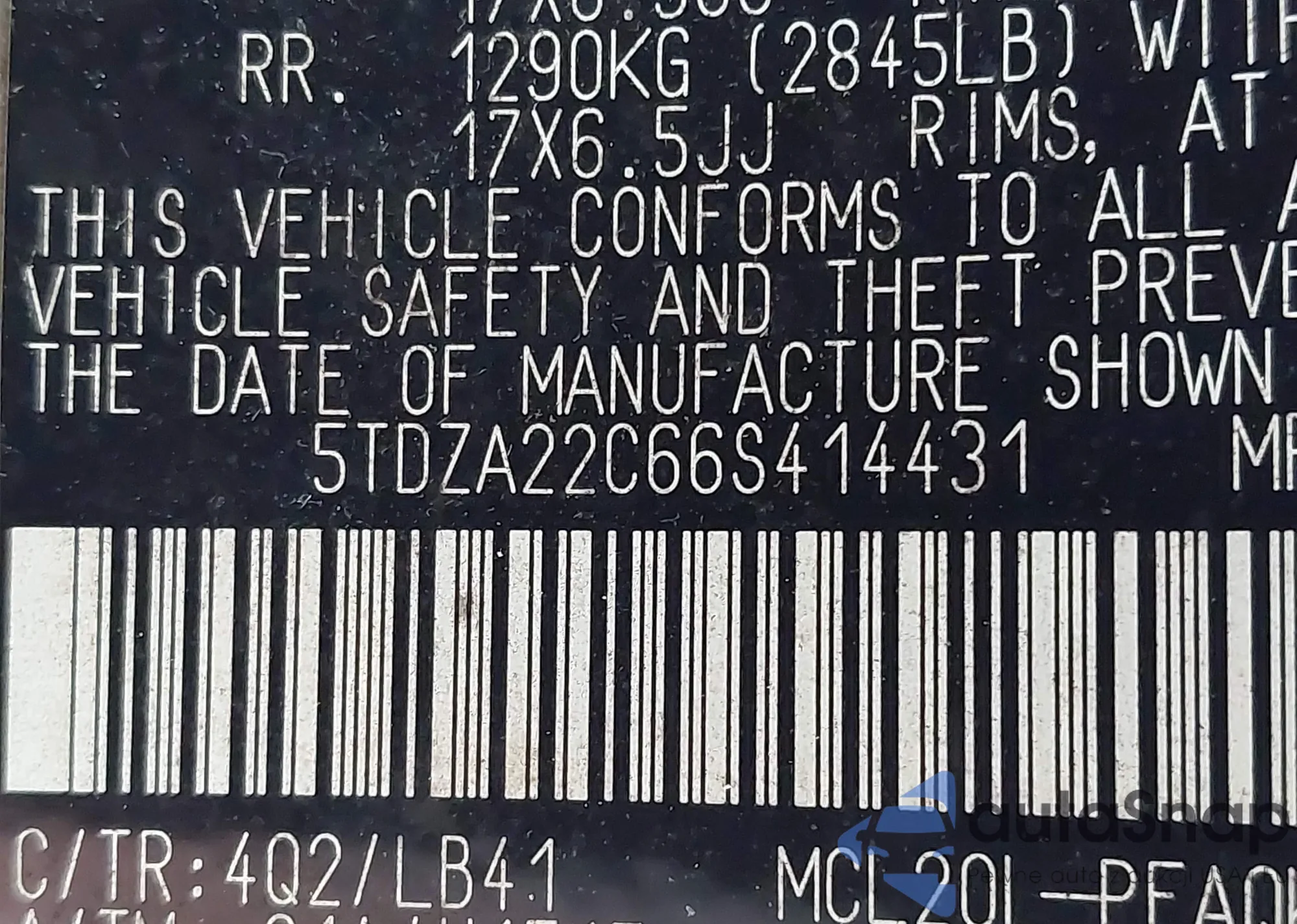 LOT: 42964290 VIN: 5TDZA22C66S414431
