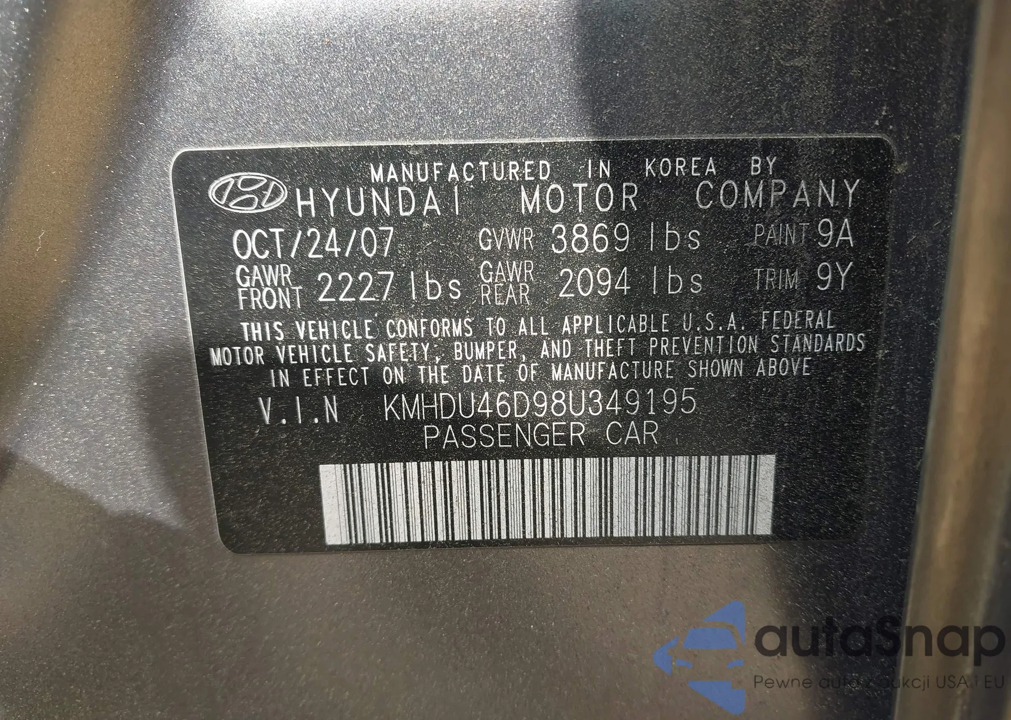 • VIN KMHDU46D98U349195