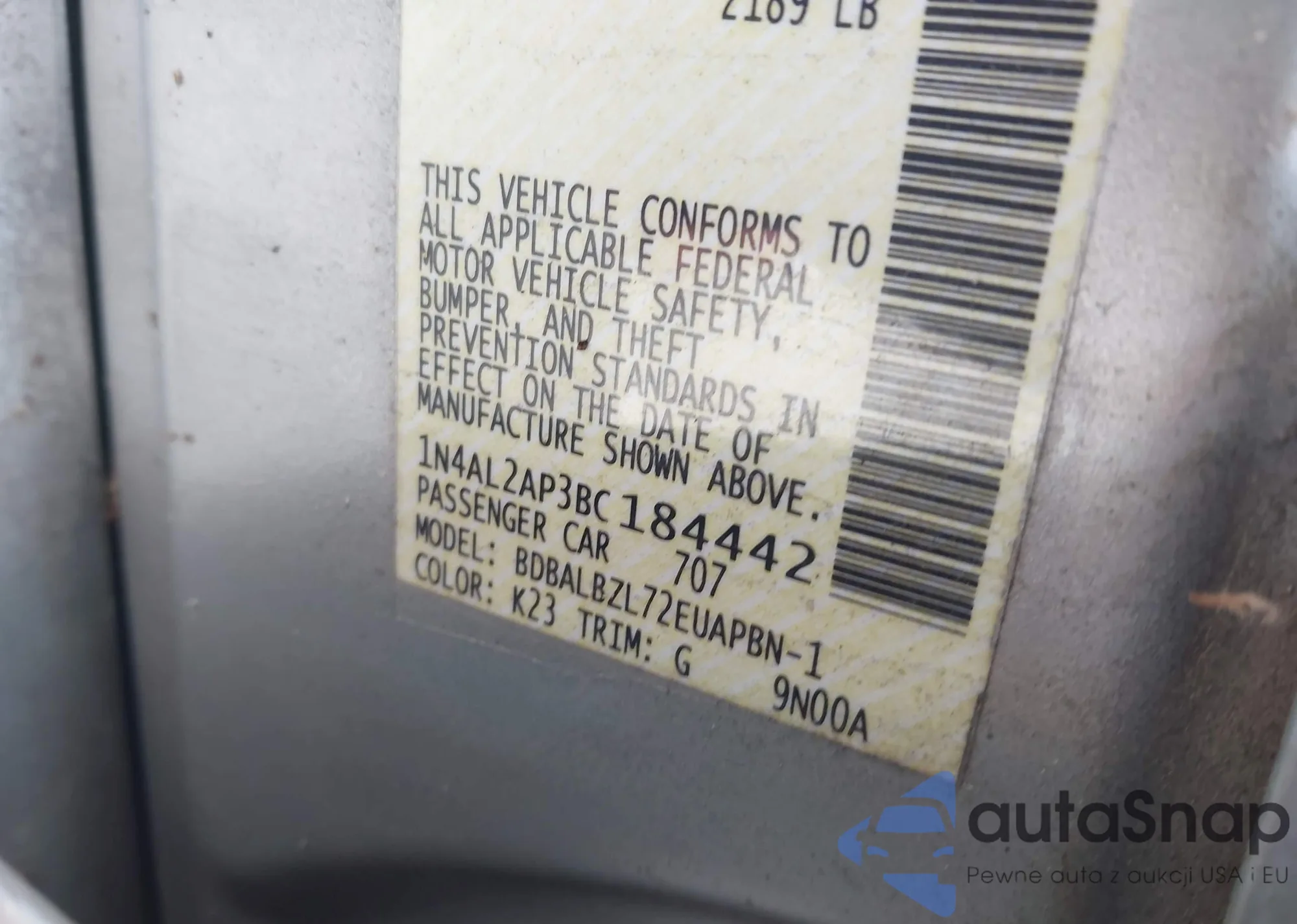 LOT: 42548002 VIN: 1N4AL2AP3BC184442