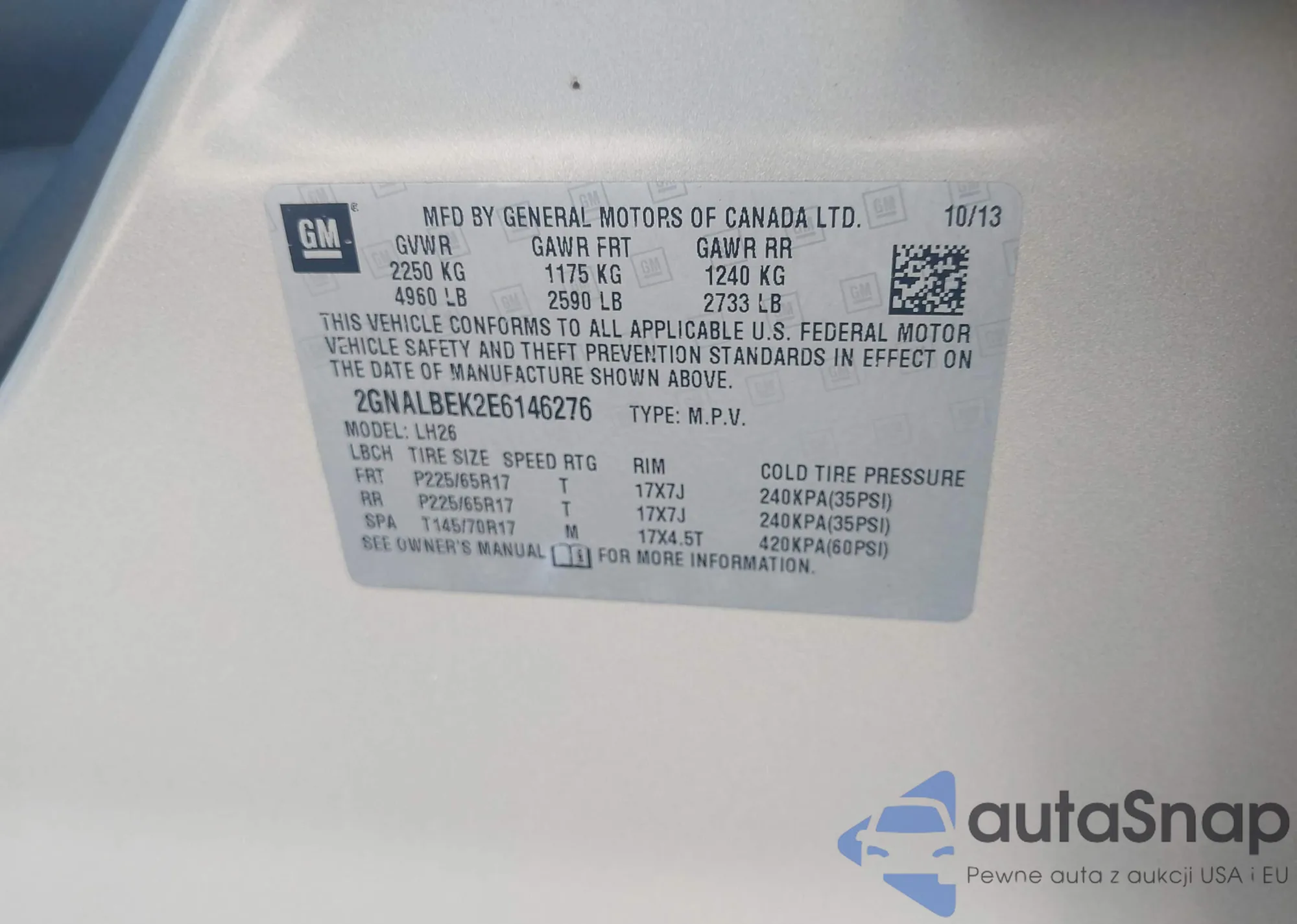 LOT: 42591436 VIN: 2GNALBEK2E6146276