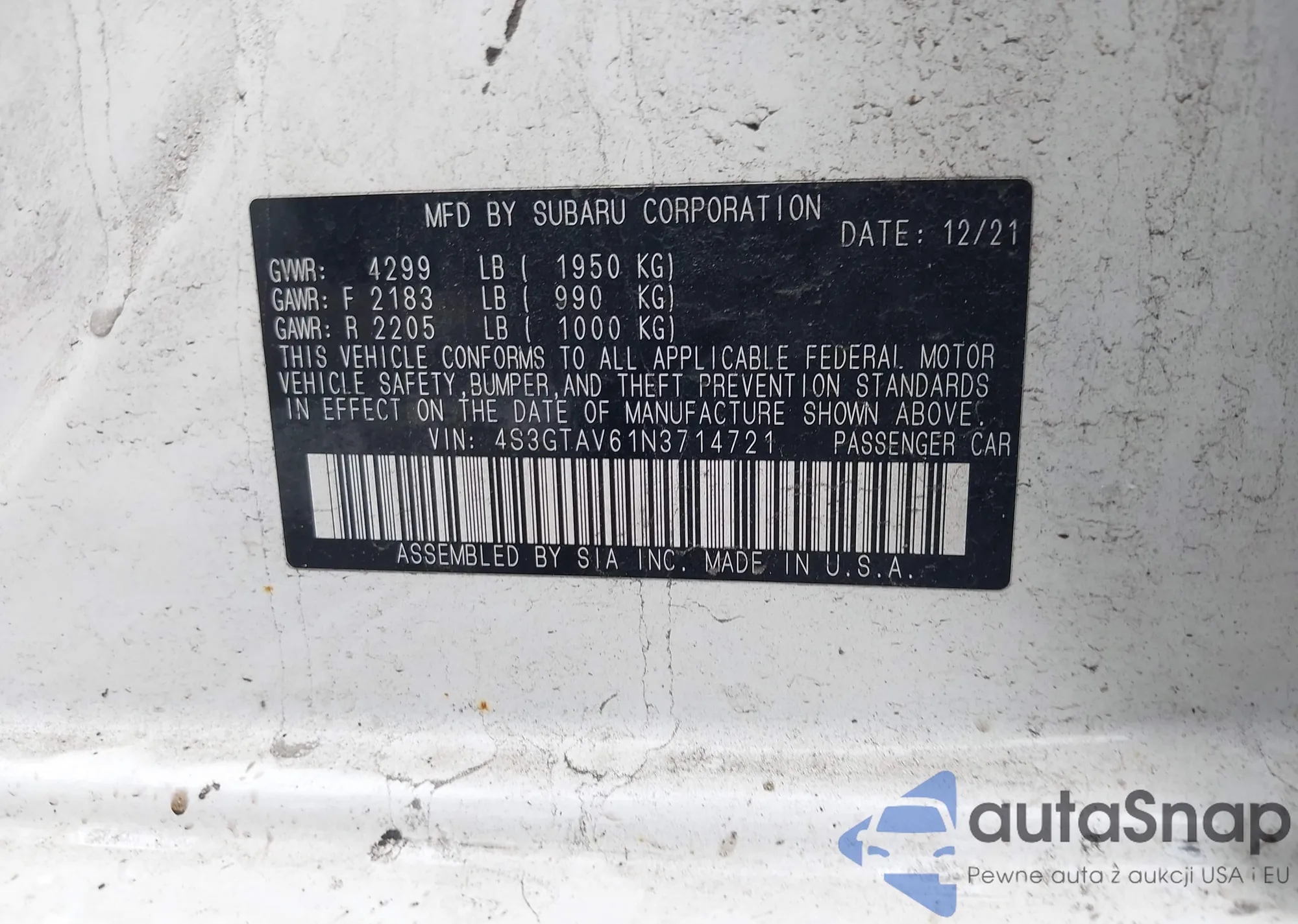 • VIN 1N4AL2AP3BC184442