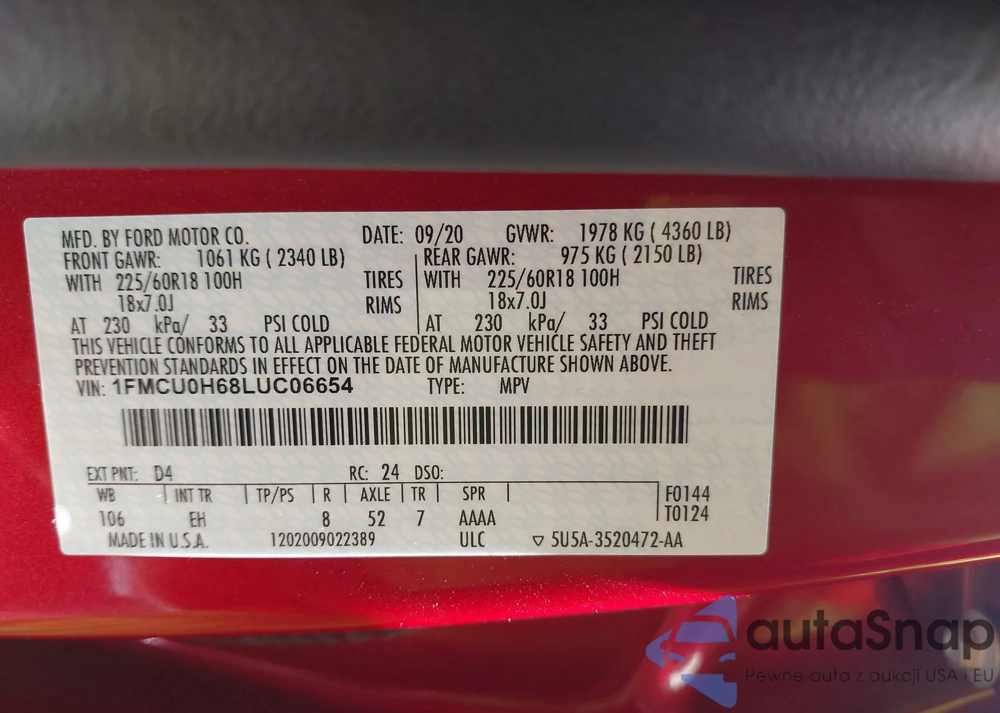• VIN 1FMCU0H68LUC06654