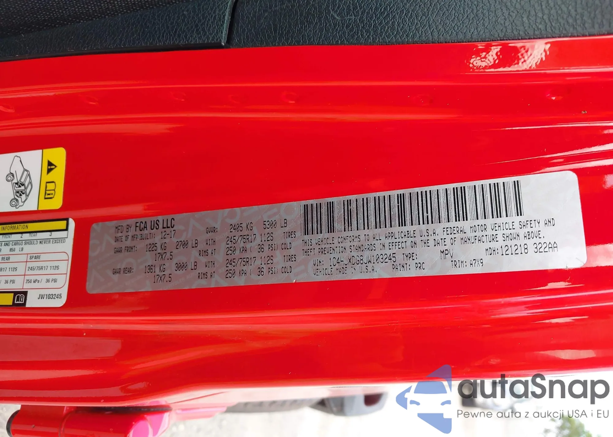 • VIN 1C4HJXDG8JW103245