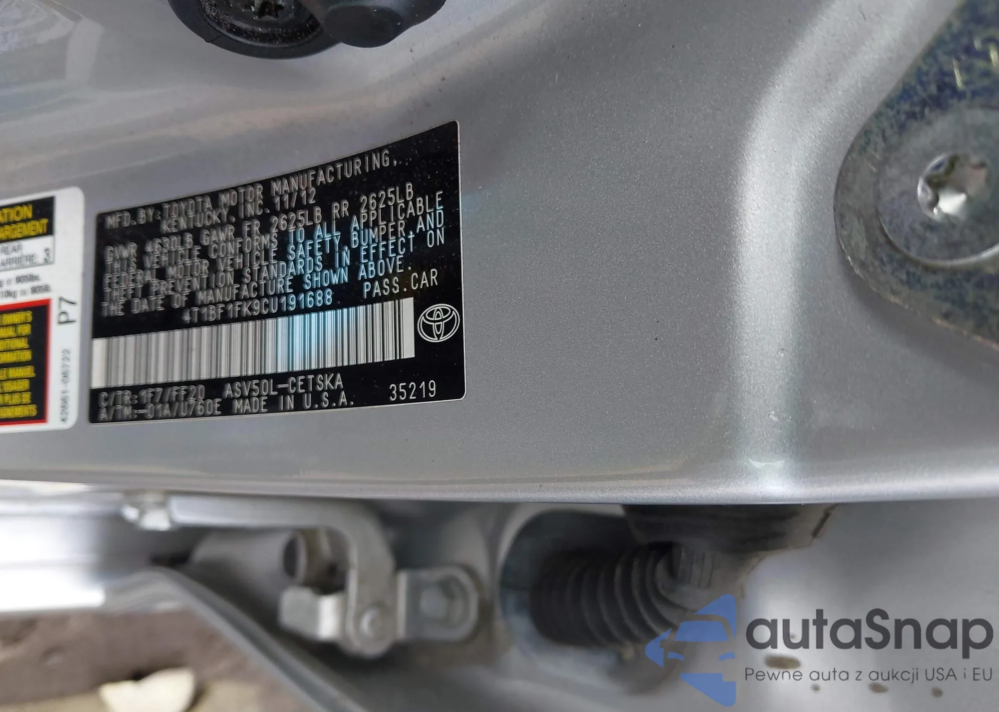 • VIN 4T1BF1FK9CU191688