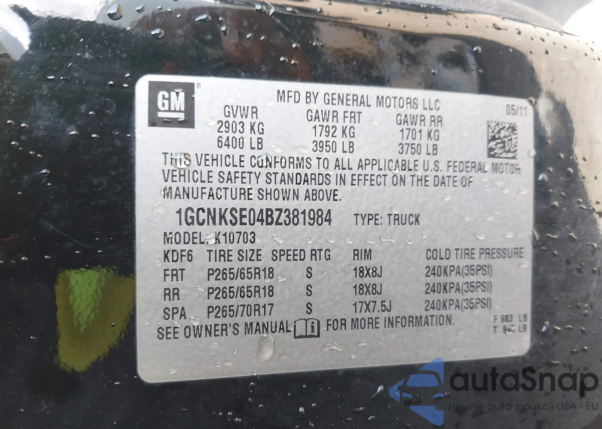 • VIN 1GCNKSE04BZ381984