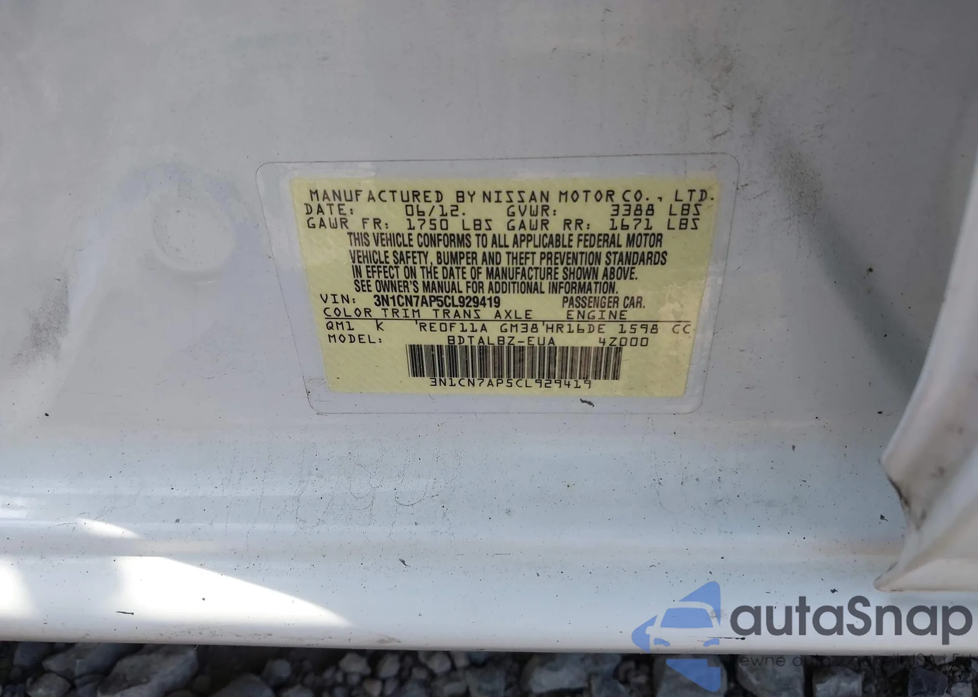 • VIN 3N1CN7AP5CL929419