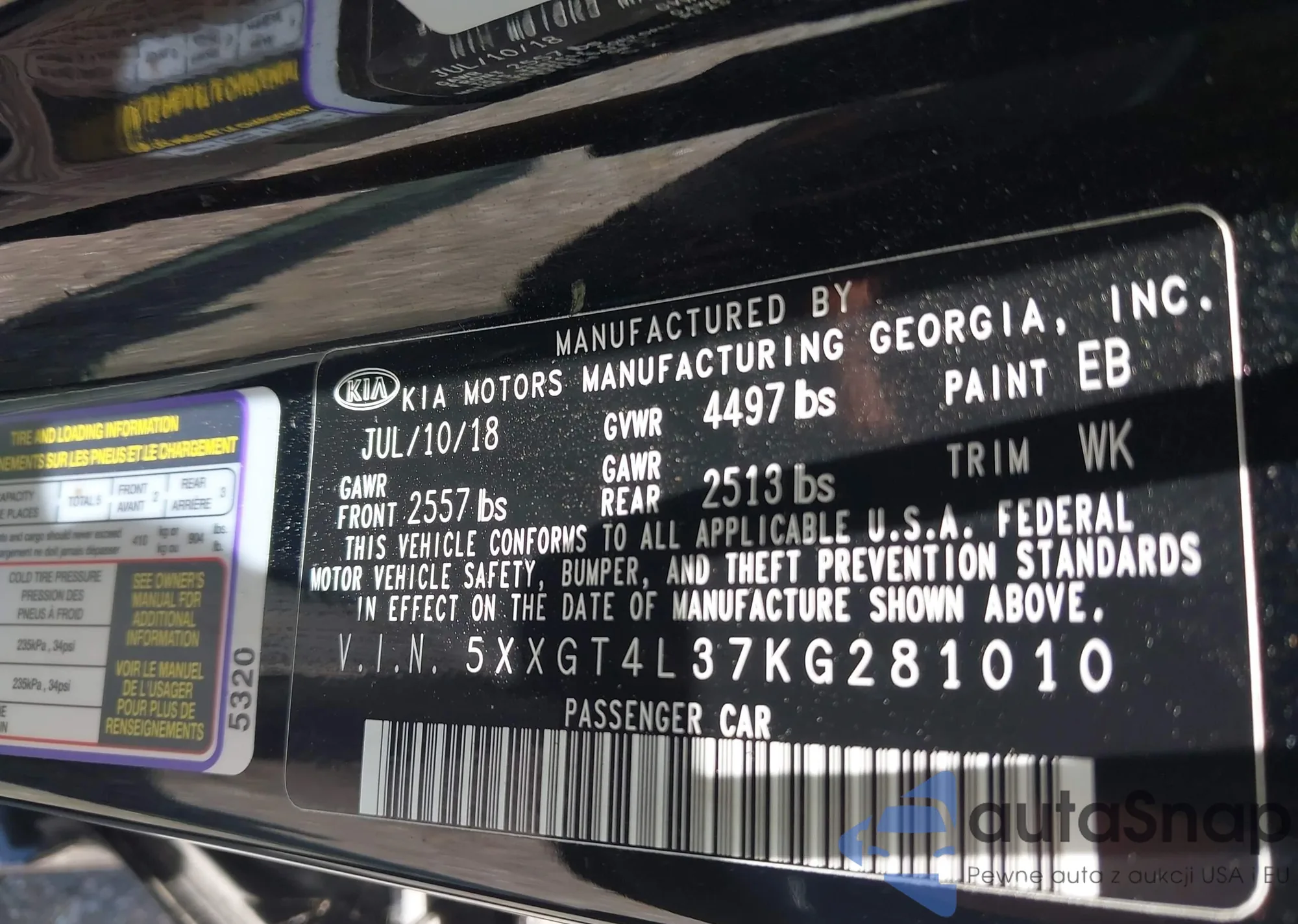 • VIN 5XXGT4L37KG281010