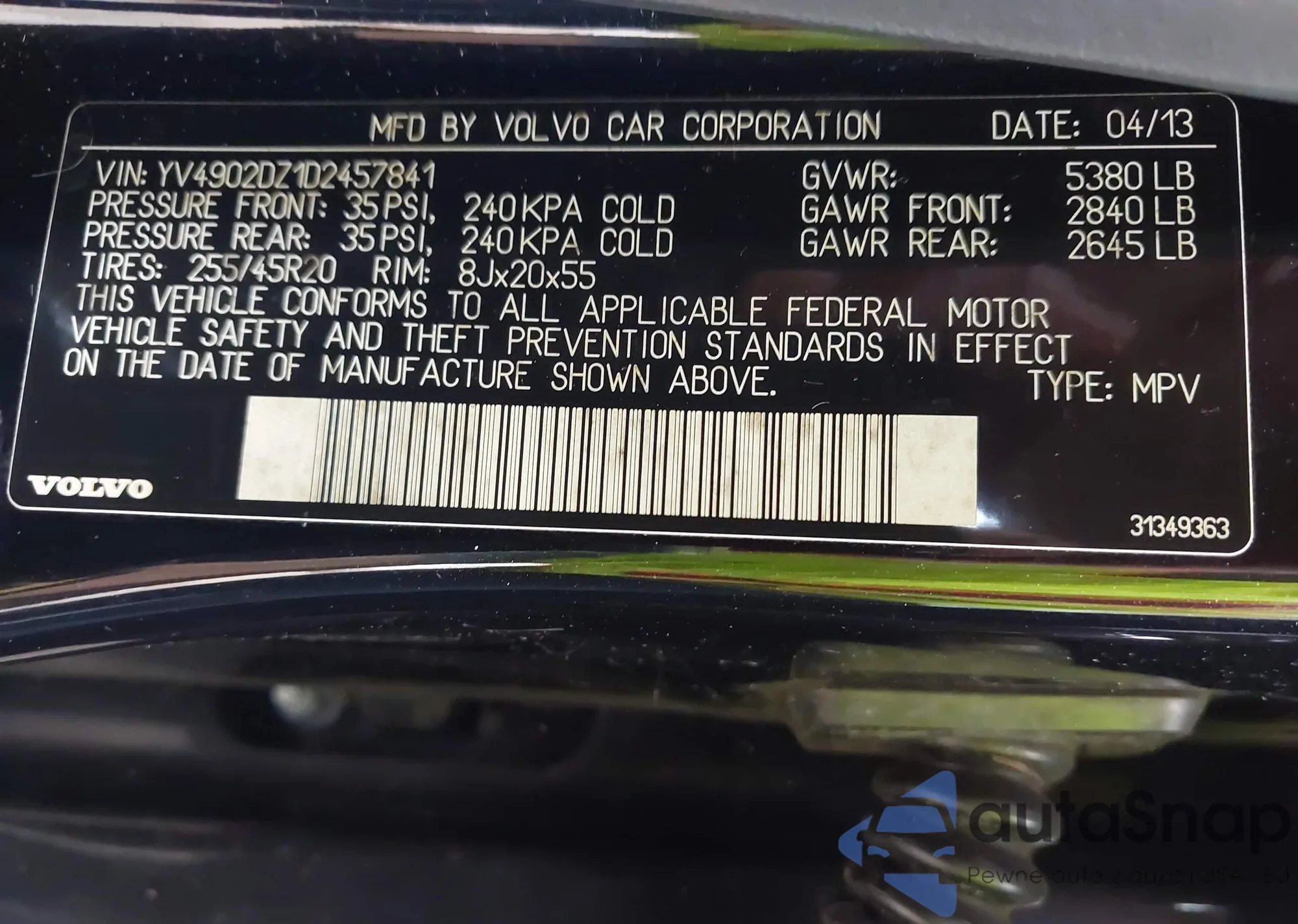 LOT: 42616841 VIN: 5XYKTDA28DG323347