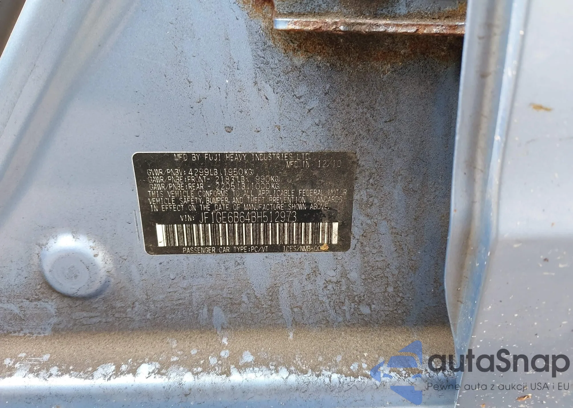 LOT: 42417867 VIN: JF1GE6B64BH512973