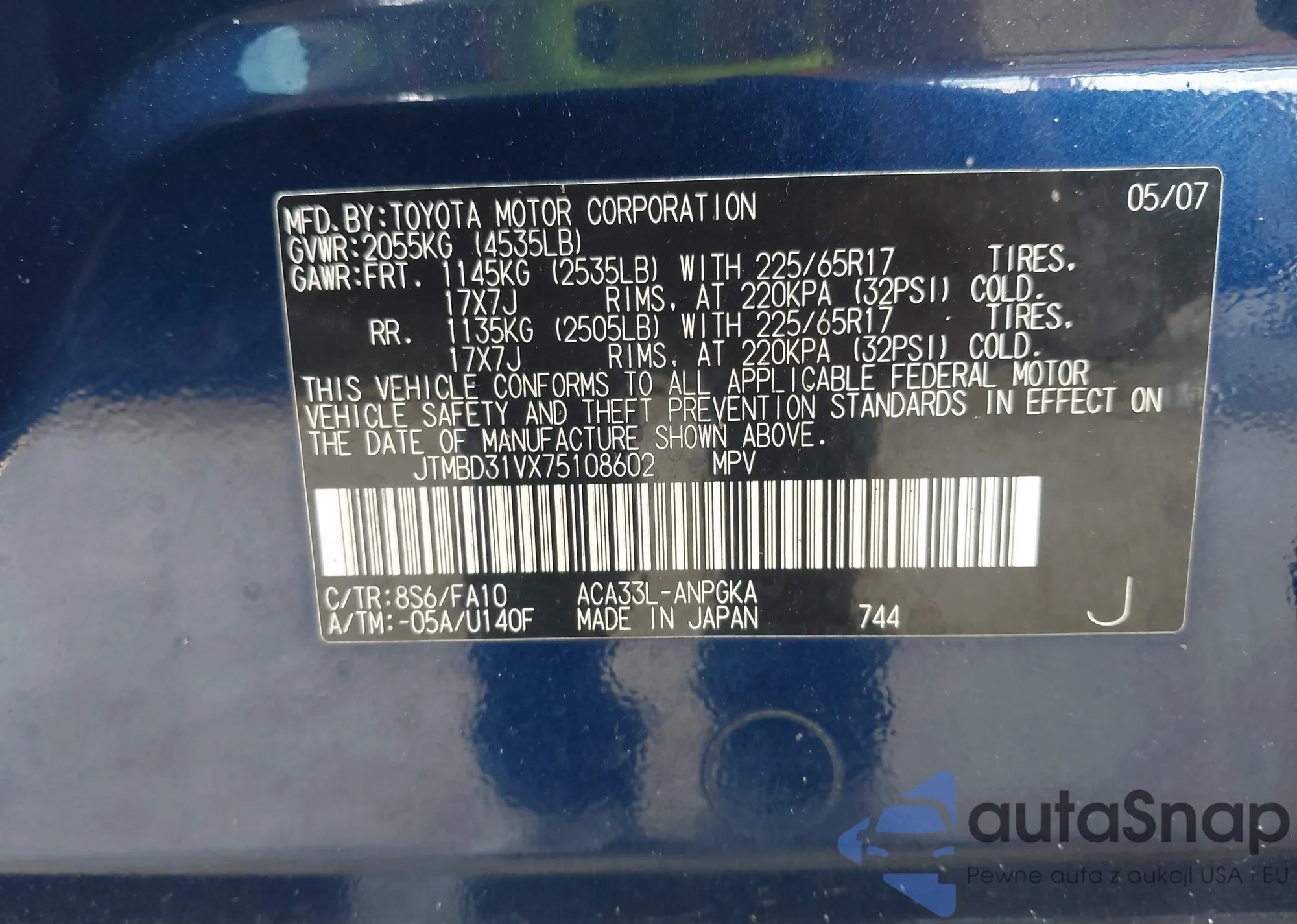 • VIN JTMBD31VX75108602