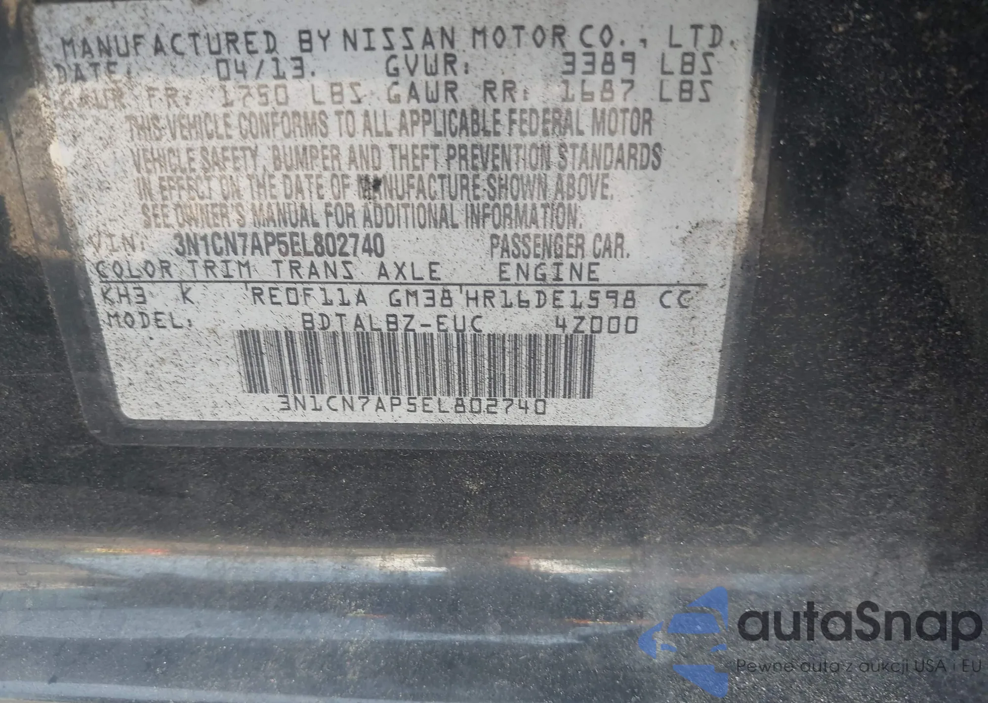 • VIN 3N1CN7AP5EL802740